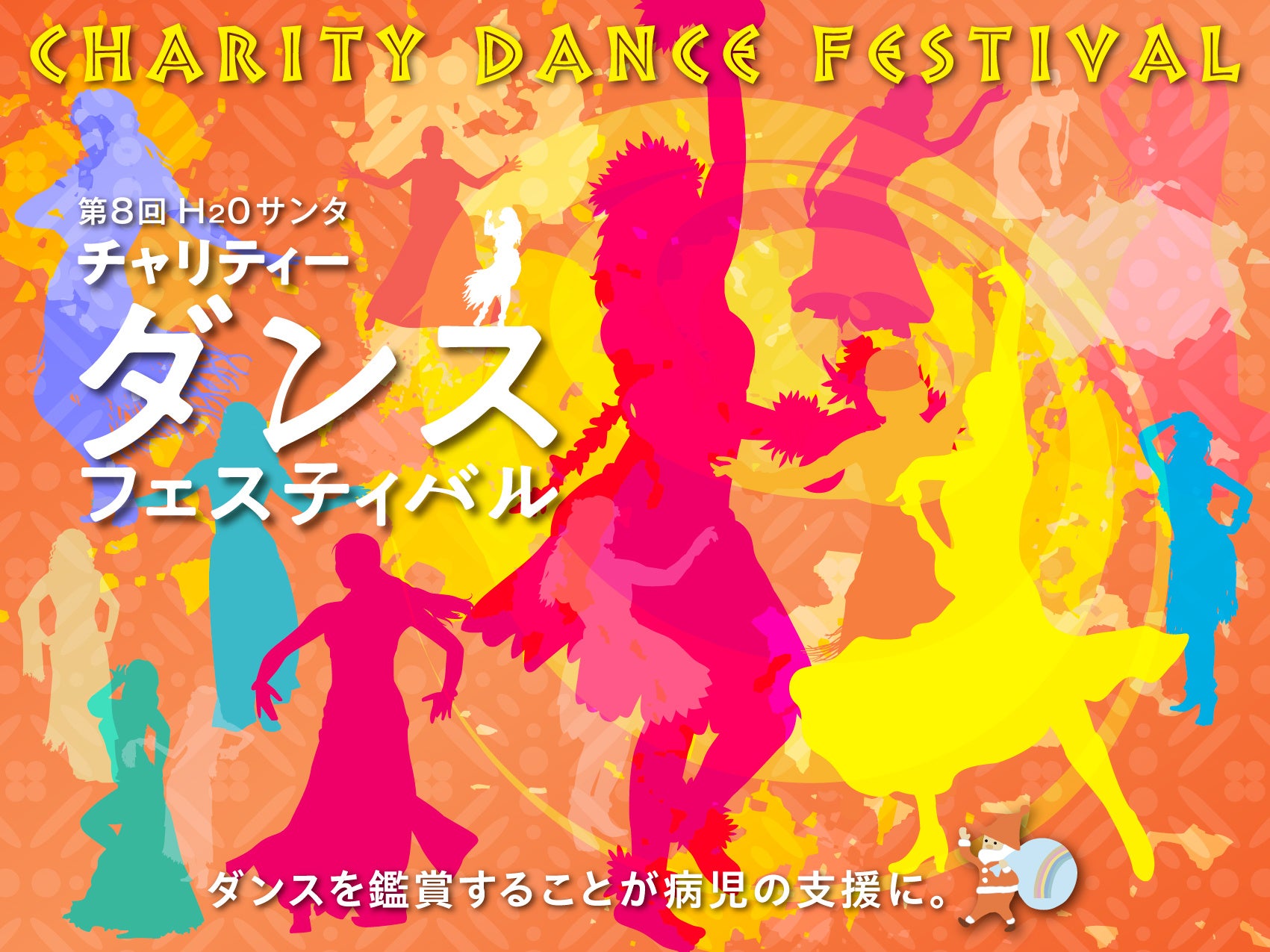 3年ぶりとなる「第8回 H2Oサンタチャリティーダンスフェスティバル」を開催します。チャリティーダンスフェスティバルは、H2Oサンタの活動に賛同してくださる出演ダンサーの方からの募金と入場料(税抜)の全額をこどもの支援に取り組む社会貢献団体に寄付するチャリティーイベントです。チャリティーと言えば一般的にお金の寄付が思い浮かびますが、個人が持つモノや技能、時間、情報をH2Oサンタのイベントを通じて、社会貢献団体が抱える課題の解決につないでいます。今回は、病児を支援する3つの社会貢献団体に寄付させていただきます。ぜひ、ダンスを楽しみながらチャリティーにご参加ください。