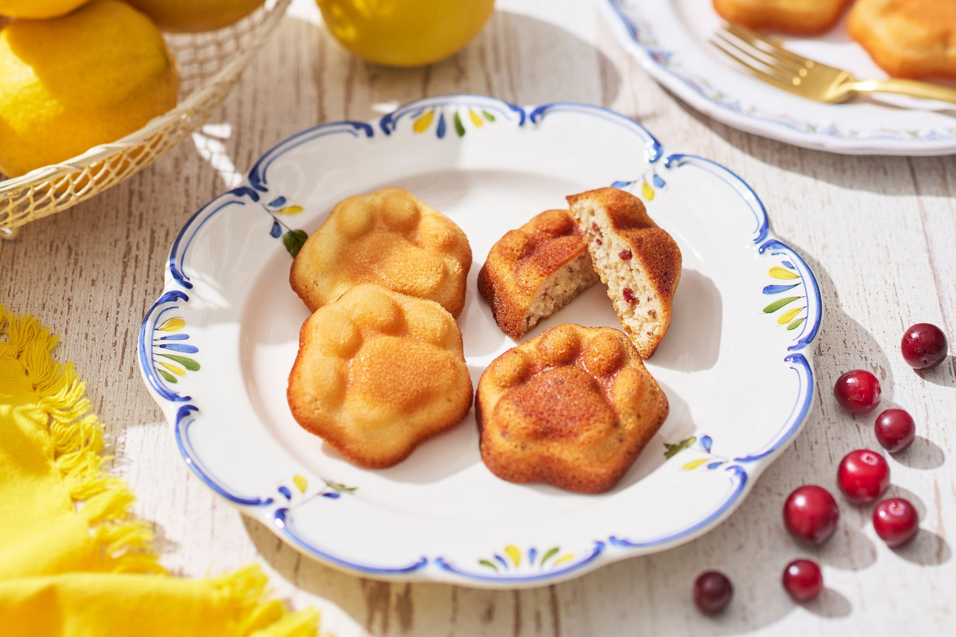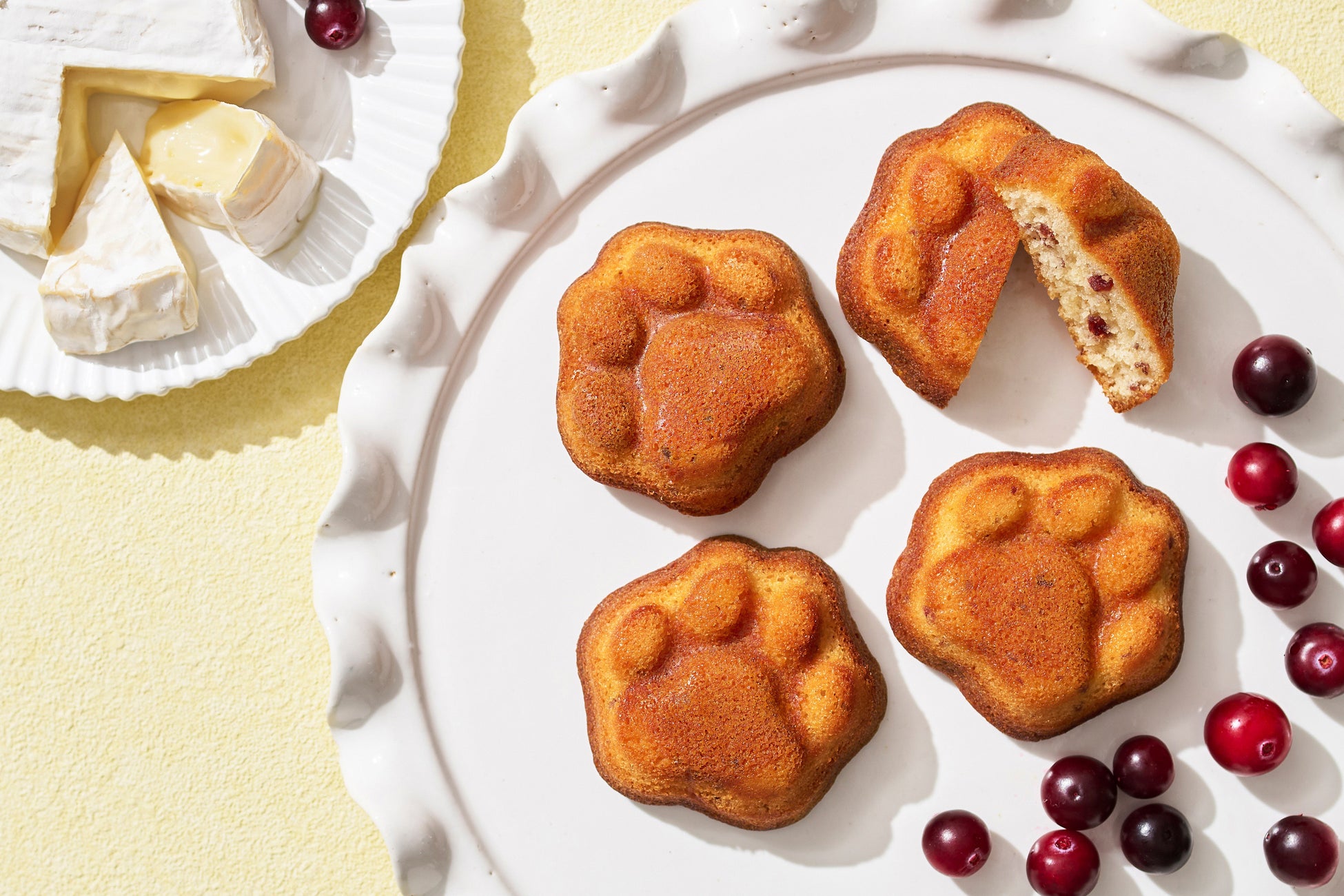 カマンベールを混ぜ込んだ生地に、糖漬けクランベリーを加えて焼き上げました。クランベリーの甘酸っぱさと芳醇なカマンベールの風味、しっとりやわらかい食感でさっぱりした甘さのスイーツに仕立てたフィナンシェです。