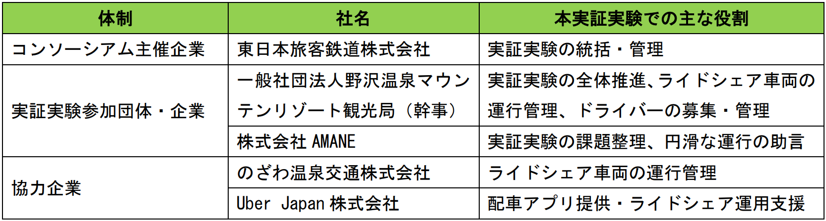 ○ 東日本旅客鉄道株式会社(本社:東京都渋谷区、代表取締役社長:喜㔟 陽一、以下「JR東日本」)、一般社団法人野沢温泉マウンテンリゾート観光局(代表理事:小田切 美幸)、株式会社AMANE(本社:東京都港区、代表取締役:井上 佳三)は、JR東日本主催の「WaaS共創コンソーシアム*」による取り組みの一環として、野沢温泉村を発着地とする移動手段となる公共ライドシェアの実証実験を2025年12月1日(月)より実施します。