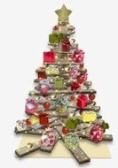 1階には建設現場などで使い古された足場板とリサイクルされたふろしきを装飾に使ったクリスマスツリーを展示します。