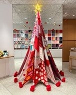 3階ではもみの木をイメージしたクリスマスツリーを展示しています。土台部分には、クリスマスに合わせて新発売したむす美のふろしきのデザインを使用しています。