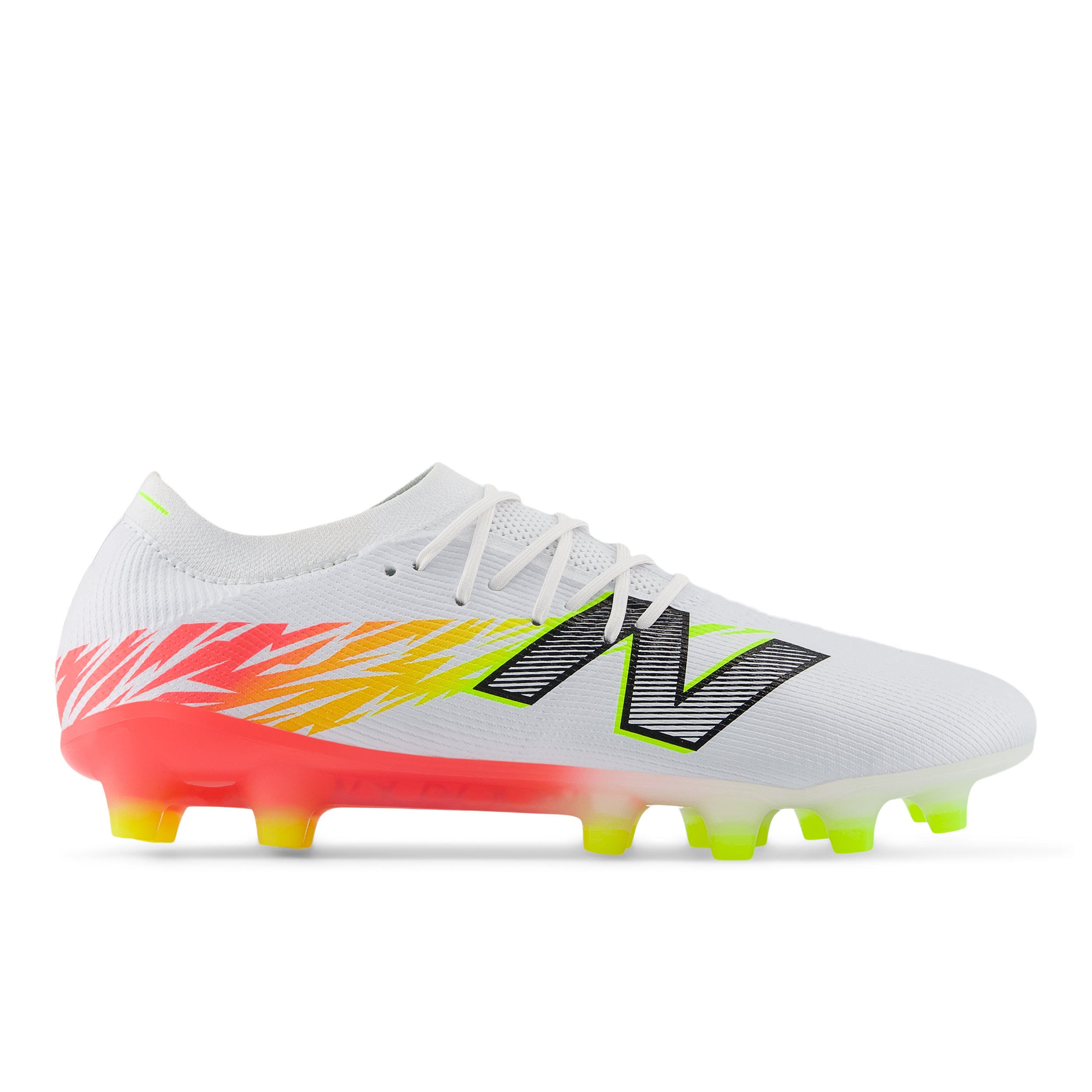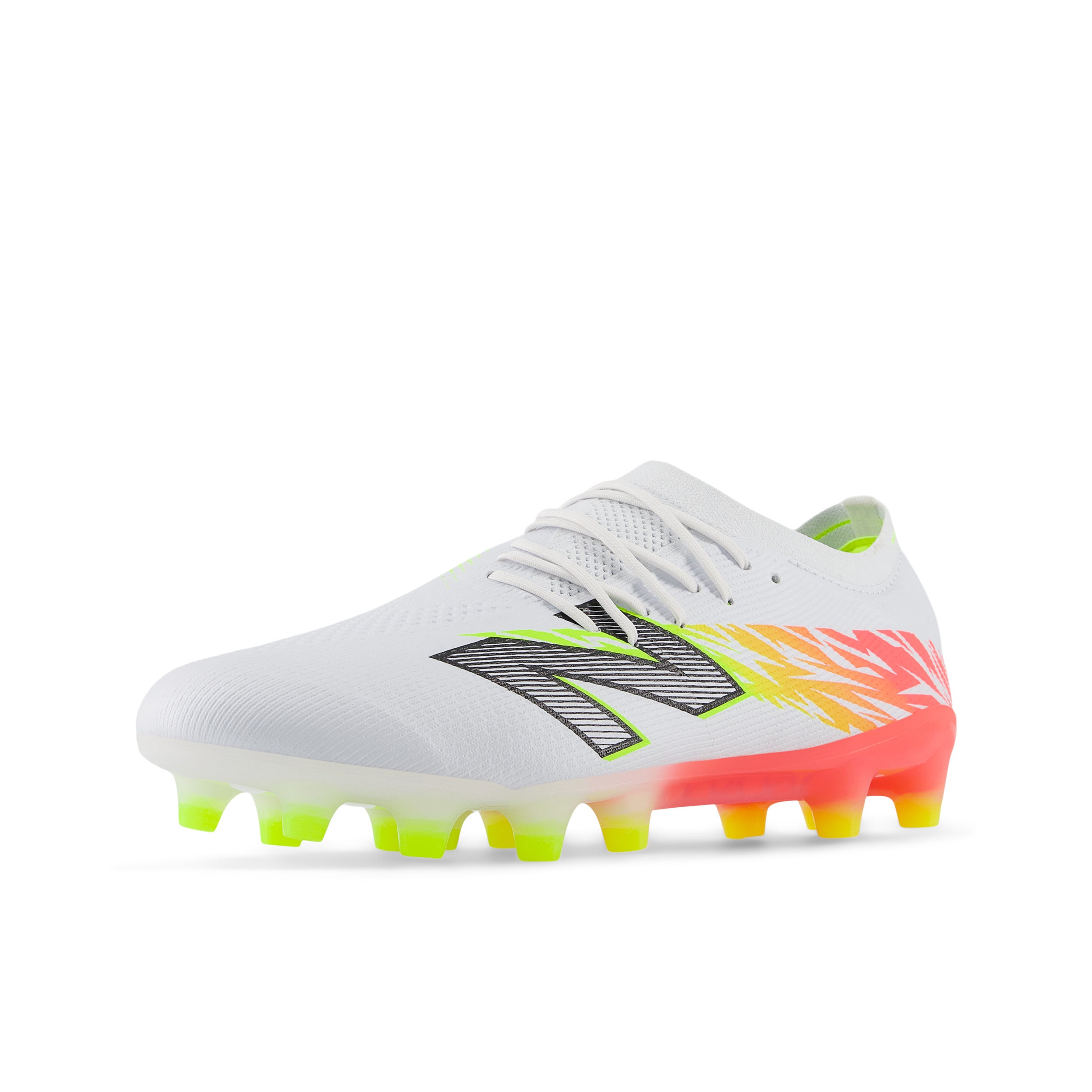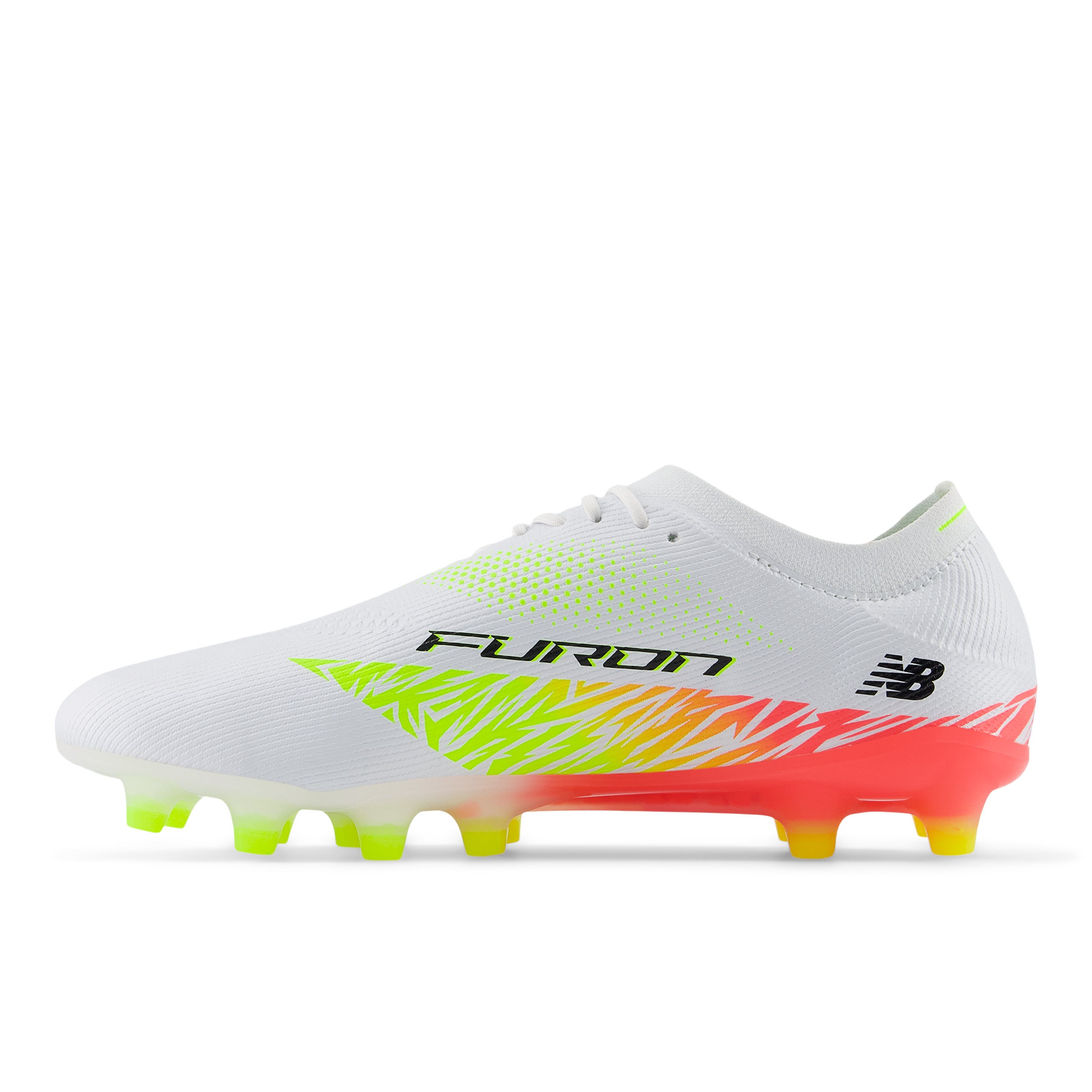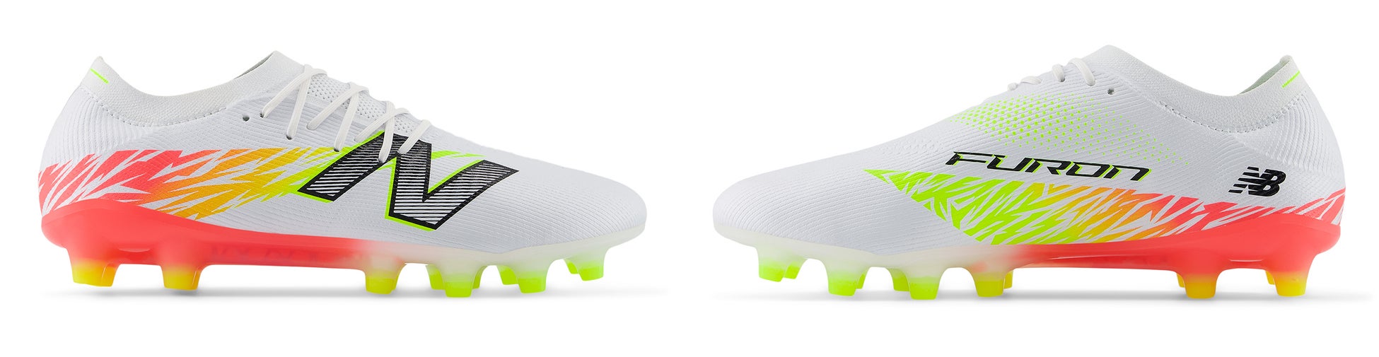 圧倒的な軽さが特長のストライカー向けスピードモデル「Furon Elite HG」がv8にアップデート。アッパーには細さを変えた糸をデータに基づいて編み込んだHYPOKNITを使用し、高いサポート性と優れた履き心地を提供します。HGモデルは狭いエリアを鋭い動きで打開できるようあらゆる角度への一歩目を最大化するT字に配置したスタッドを配置し、甲のストライクゾーンを広くクリアに確保した、NB史上最軽量のスパイクです。