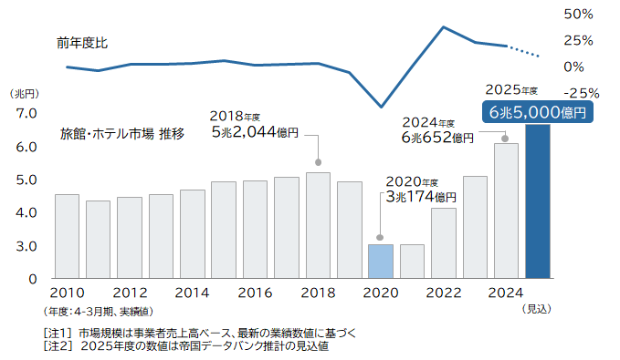 旅館・ホテル市場、25年度は6.5兆円予想 過去最高を更新へ