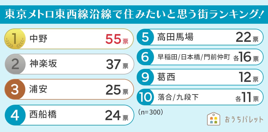 おうちパレット・男性が選ぶ東京メトロ東西線沿線の住みたい街に関する調査