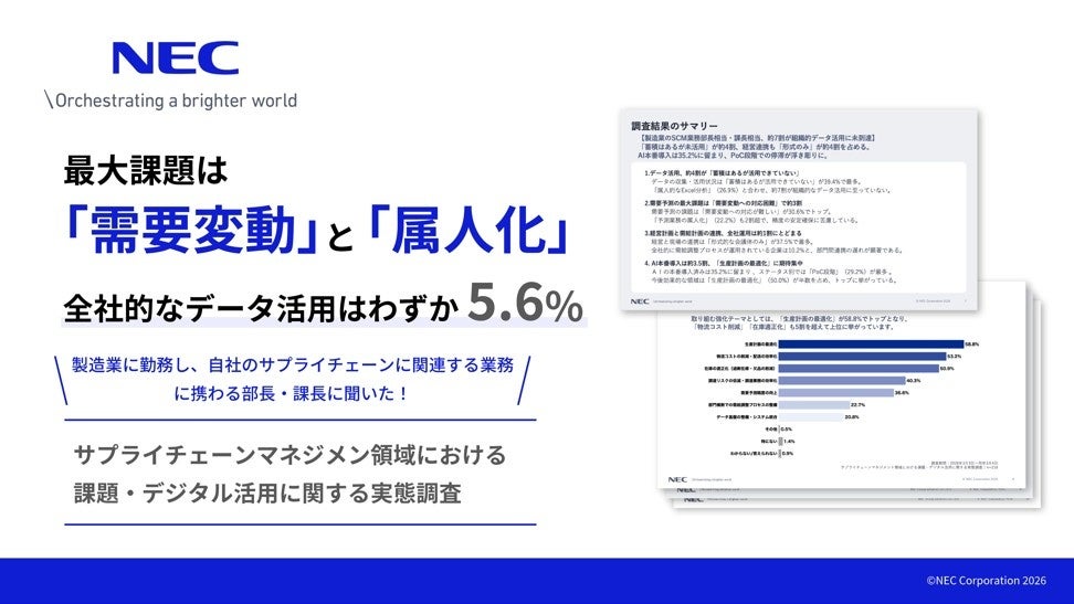 NEC、「サプライチェーンマネジメント領域における課題・デジタル活用に関する実態調査」レポートを公開