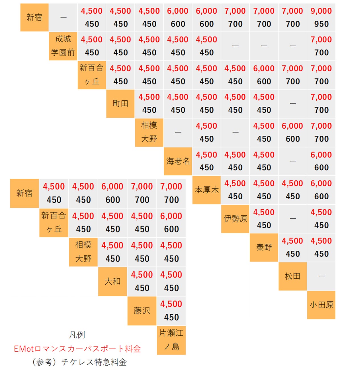 なお、具体例として、4,500円のチケットで新宿→町田(相模大野)をロマンスカーで移動すると、乗車時間は30分程度であり、この定額サービスで月に12回ご利用いただくと、375円/回の計算になります。