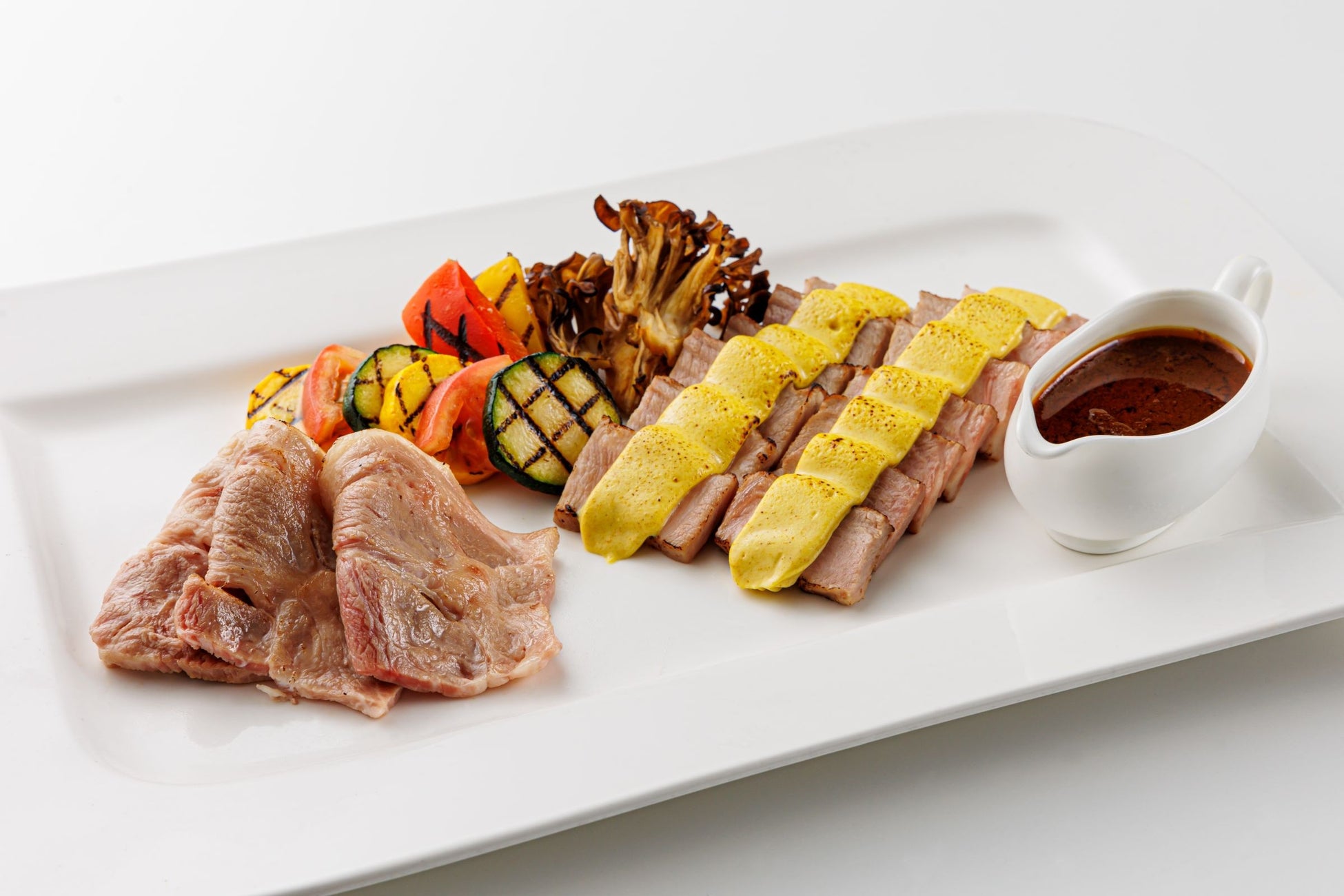 柔らかくジューシーなポークにオニオンとベシャメルソースで作ったソースを掛け焼き上げました。