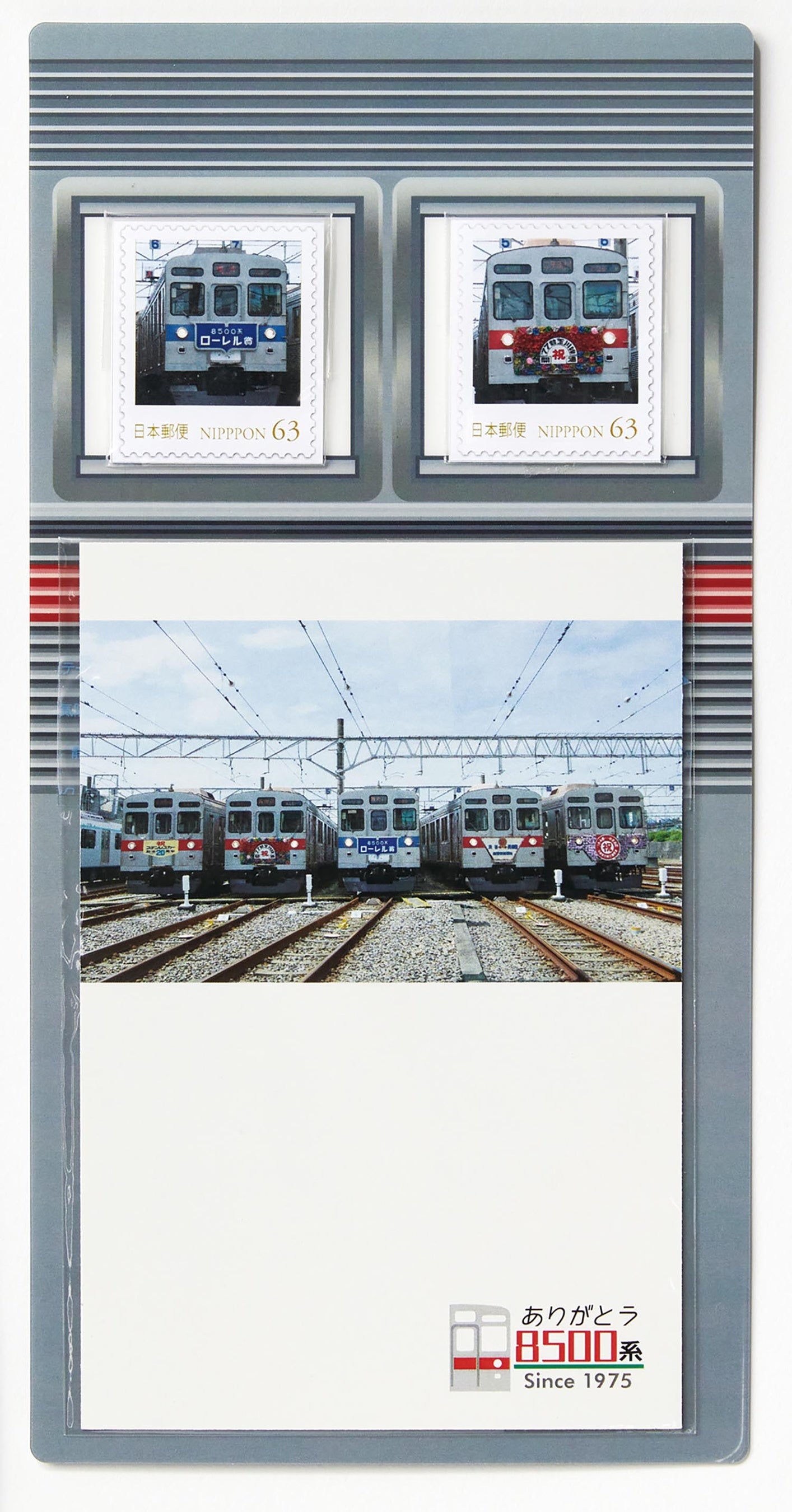 2023年1月に引退を迎える8500系の切手に下敷きとポストカードが付いています。