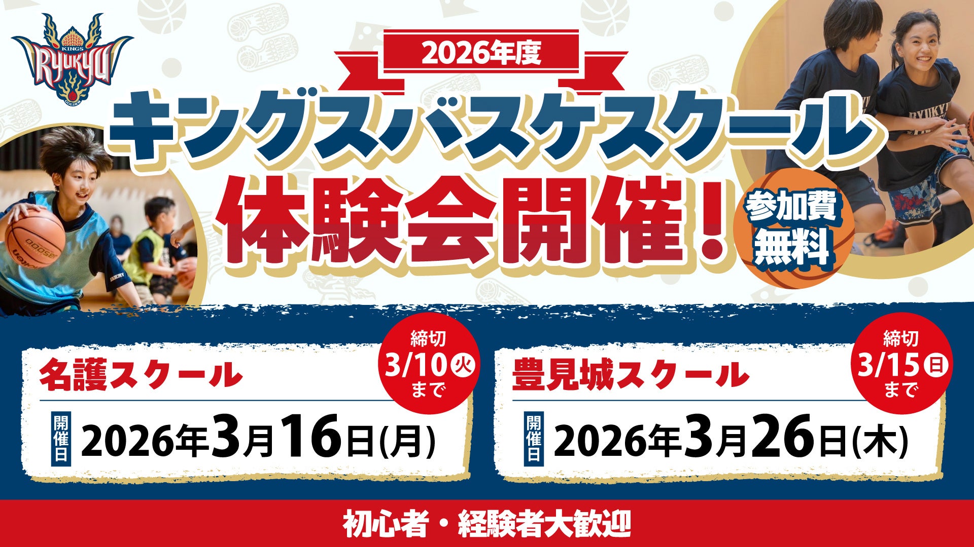 このたび、琉球ゴールデンキングスアカデミーでは名護スクール・豊見城スクールにて「キングスバスケスクール体験会」を開催いたします。