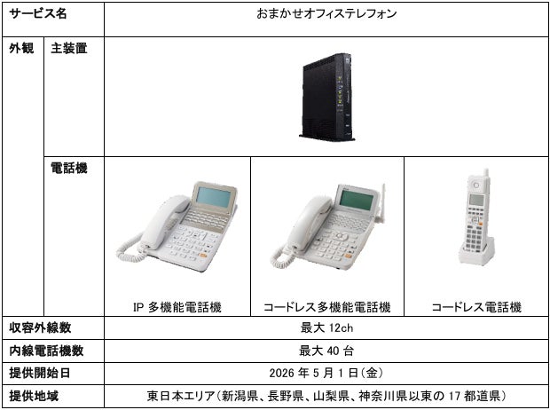 NTT東日本株式会社(以下、NTT東日本)は、オフィスに必要な電話環境を手軽に構築できる新たなビジネスフォン「おまかせオフィステレフォン」(以下、本サービス)を2026年5月1日(金)より提供開始いたします。