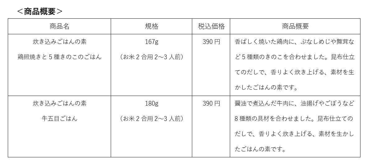 9/14(水)「炊き込みごはんの素」新商品発売のお知らせ