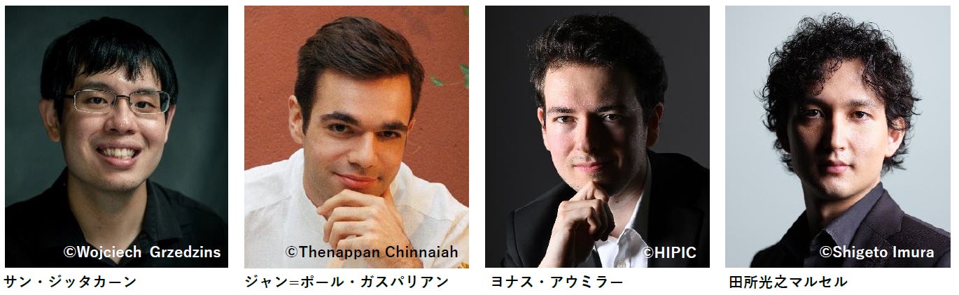 サン・ジッタカーンは本事業で初となるタイからの来日、ジャン=ポール・ガスパリアンは待望の初来日、ドイツ出身のヨナス・アウミラーは今年10月のショパン国際ピアノコンクール本大会に出場予定、田所光之マルセルは今年6月にCDデビューと、話題のピアニストが横浜に集います。