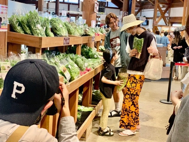 - スーパーでは見かけない「道の駅」の地元野菜に盛り上がる中村さんファミリー