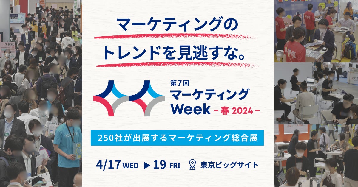 2024年4⽉17⽇(水)〜19⽇(金)の3⽇間、 RX Japan株式会社(本社:東京都中央区、代表取締役社⻑:⽥中 岳志)は、日本最大級のマーケティング総合展「第7回 マーケティングWeek 春 2024」を東京ビッグサイトにて、開催いたします。