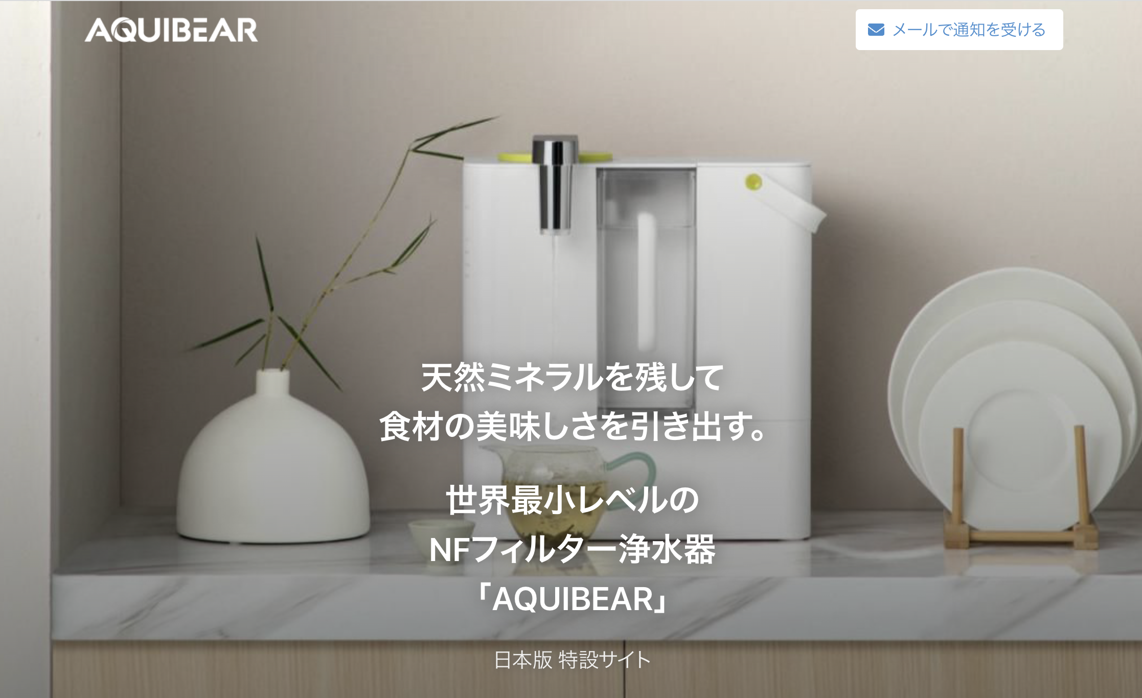 食材の美味しさを引き出す世界最小レベルのNFフィルター浄水器「AQUIBEAR」のプレローンチを開始