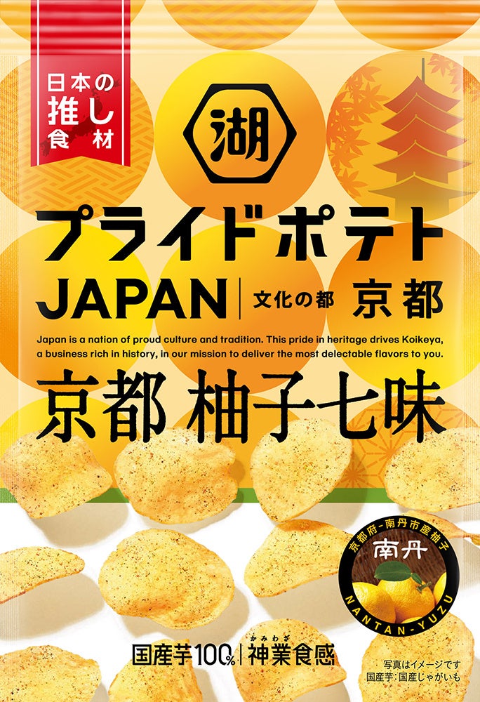 京都府、南丹市、そして湖池屋が手を組み、“文化の都・京都”の魅力を詰め込んだ「湖池屋プライドポテト JAPAN 京都 柚子七味」を、ぜひご賞味ください。
