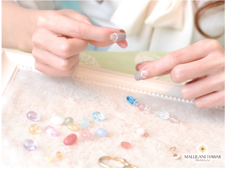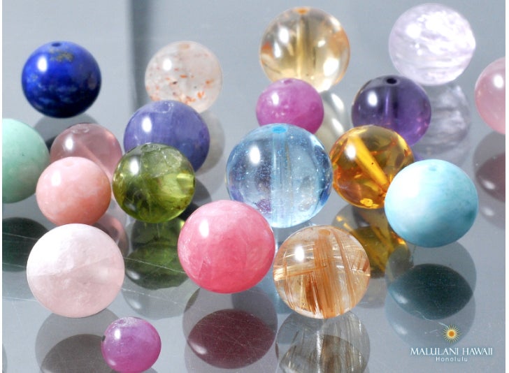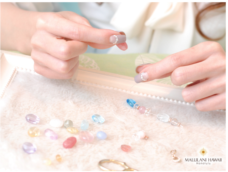 マルラニハワイでは、天然石の加工段階でできる傷やへこみ、ビーズの穴の位置など、自社基準により選定し、アクセサリーを作成しています。
