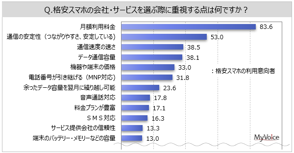 - 格安スマホのサービス選定時の重視点