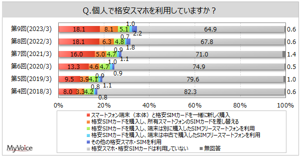 マイボイスコム株式会社(東京都千代田区、代表取締役社長:高井和久)は、9回目となる『格安スマホ』に関するインターネット調査を2023年3月1日~5日に実施しました。調査結果をお知らせします。