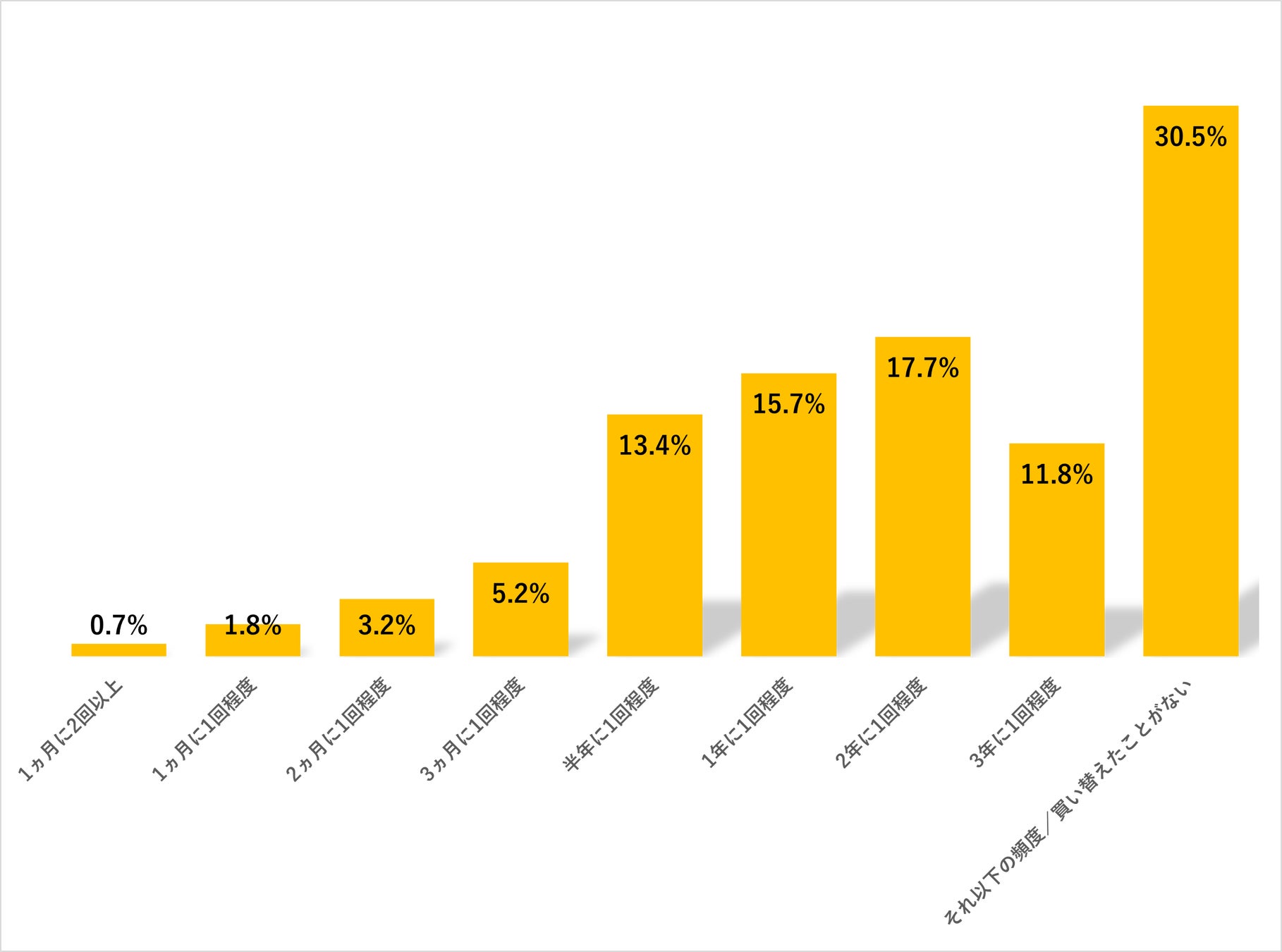 半年以内の買い替えは、4人に一人の24.3%、3か月以内の買い替えは、10人に一人の10.9%という結果になりました。