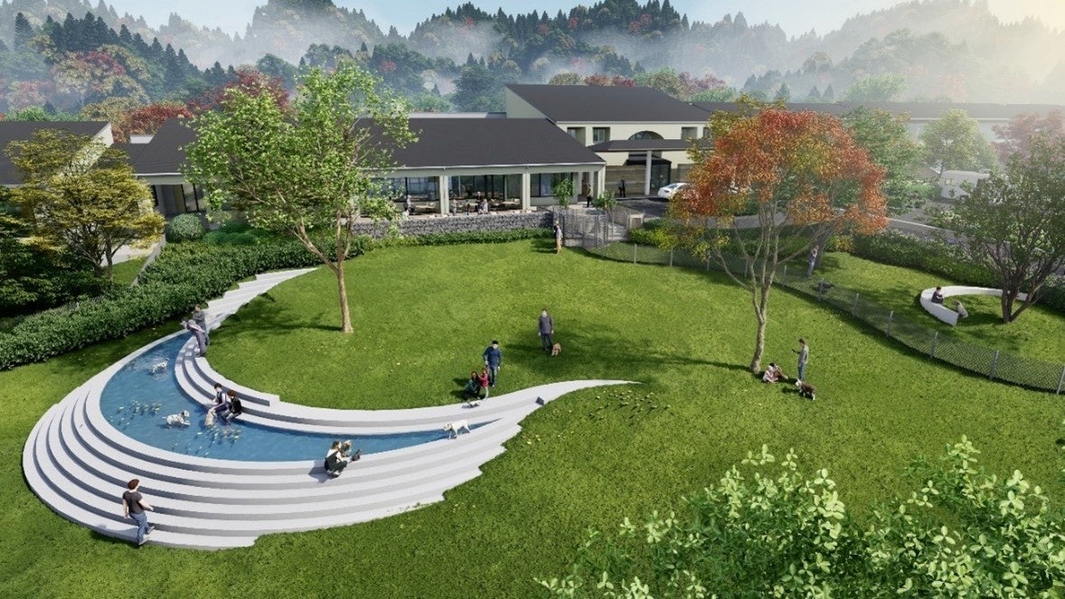 特長的な設備の一つである、約2,200㎡の広大な天然芝のドッグパークは、ワンちゃんが雄大な箱根の自然の中で自由に駆け回れる関東最大級の規模を誇ります。森の散歩道をイメージしたドッグガーデン、全天候型の屋内ドッグランも完備し、いつでも元気な愛犬の姿を見守ることができます。全15室の客室は、約60~200㎡の広々とした造りで、全室に温泉を配備。1階の客室には100㎡を超えるプライベートドッグラン、2階の客室にはインナーバルコニーを設け、プライベートな時間を重視します。温かみのある木材を多用した室内は、愛犬専用のトイレ、ベッド、アメニティも充実し、犬種・頭数を気にせず、ワンちゃんも愛犬家の皆さまもリラックスできる空間です。
