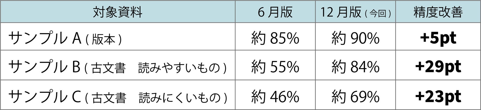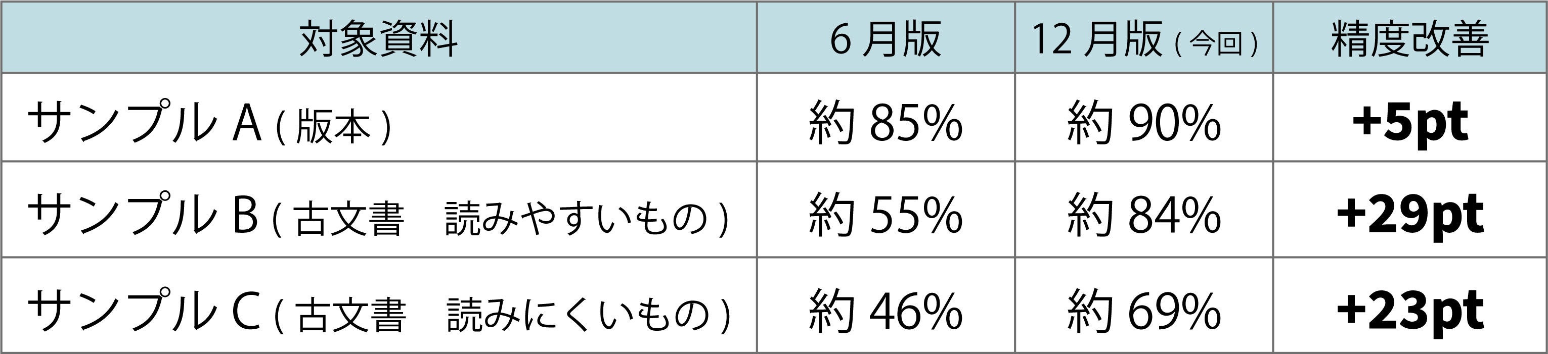 学習データの追加およびAI-OCRモデルの刷新により、とくに手書きの古文書に対して、大幅な解読精度の改善が認められました。
