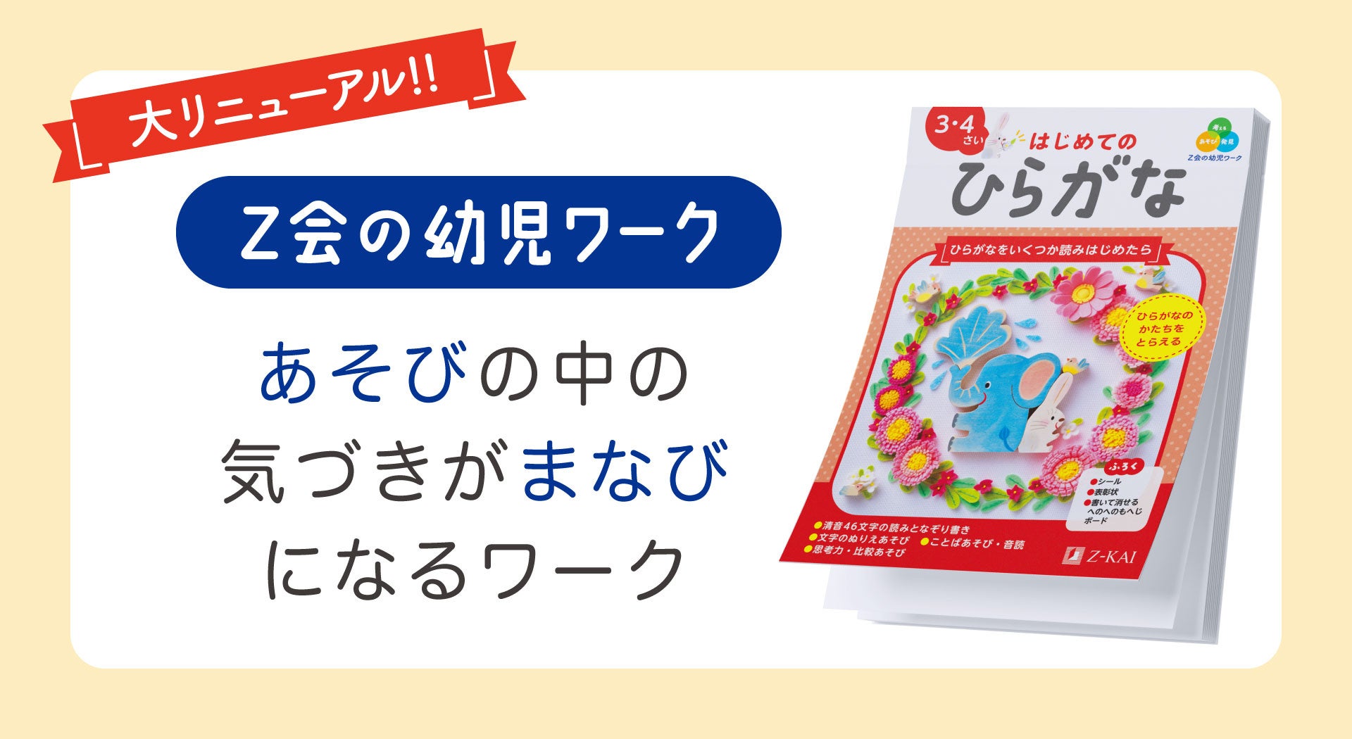 「Z会グレードアップドリル」シリーズは、考える力を鍛えるコンセプトはそのままに、「あそび・発見・考える」を軸にした学びを応援する「Z会の幼児ワーク」としてリニューアルしました。