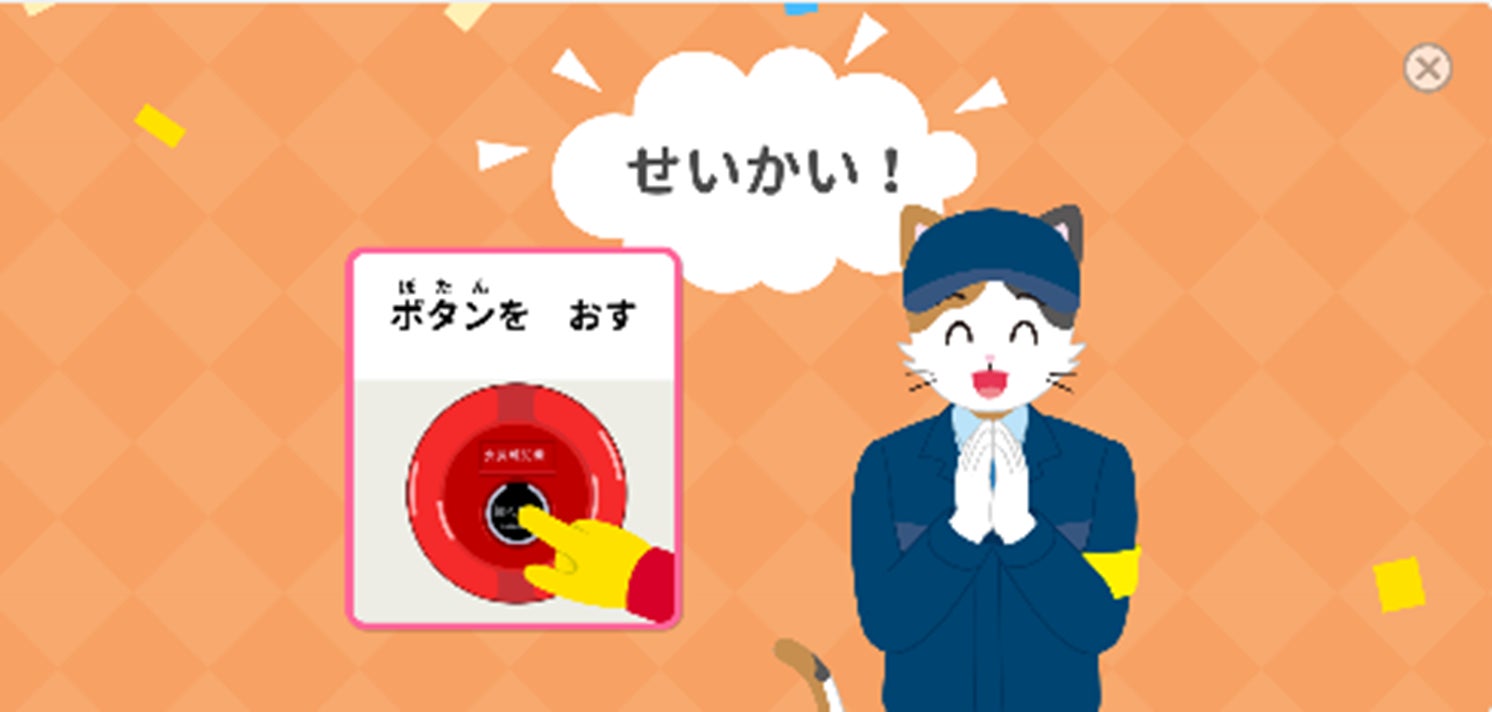 本ゲームでは、「こどもちゃれんじ」の人気キャラクター「しまじろう」が、建物や施設における消防設備の設置・点検・メンテナンスを行う「消防設備士」になりきり、身近な街の施設に取り付けられている自動火災報知機の点検を行うことで街の安全を守ります。また、火災が起きた時の対処法などをクイズ形式で、親子で楽しく火災防災知識を学べる内容となっています。子どもたちがゲームを楽しみながら防災意識を自然に身につけることを目指しています。