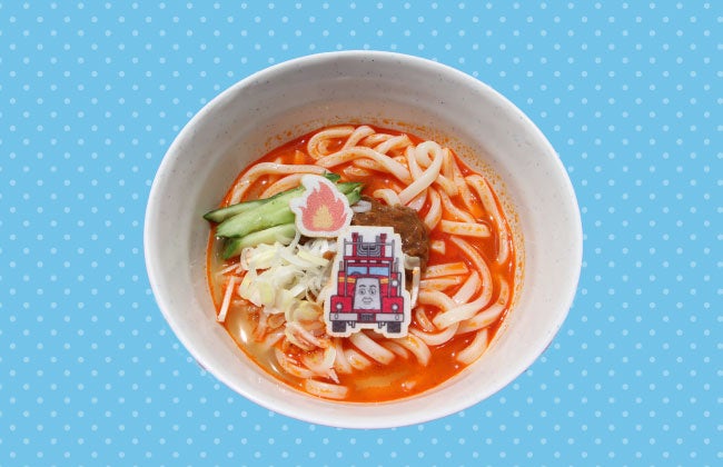 トーマスレストランでは、レスキューチームをイメージした期間限定メニューが新登場。空のヒーロー「ハロルド」がパトロールしている様子をイメージした「ハロルドの冷やしレスキューうどん(スーベニア丼付き)」をはじめ、ピリ辛な味わいが特徴の「フリンの辛口消火坦々うどん」、ハロルドやパーシーをイメージした暑い夏にぴったりなシェイクといったメニューを多数販売いたします。