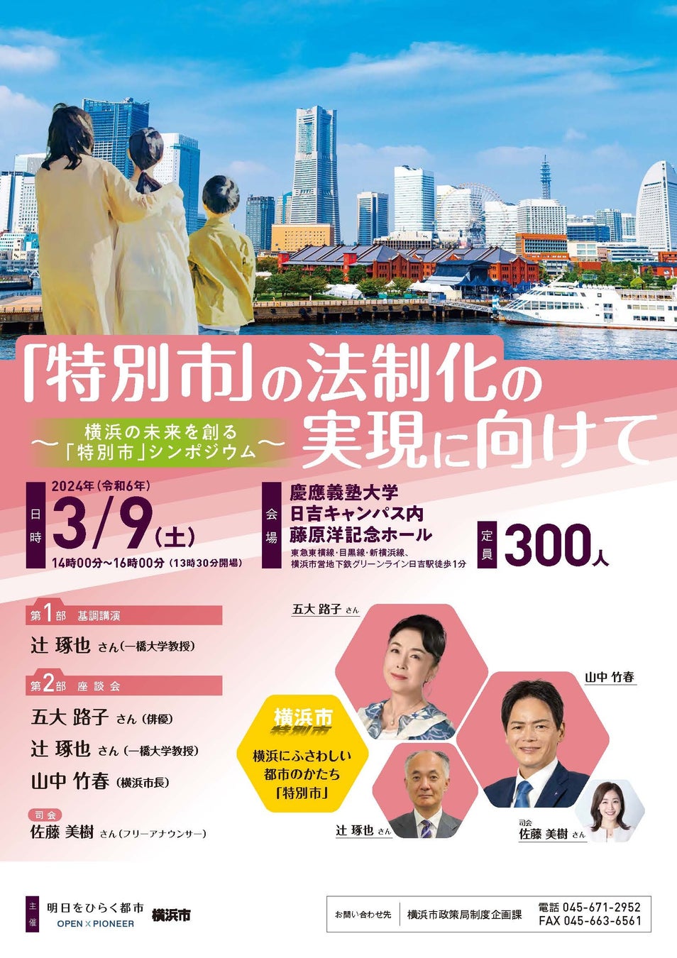 【参加者募集中!】横浜の未来を創る「特別市」をテーマにシンポジウムを3月9日(土)に開催します!!