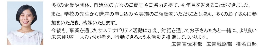 当社ではこの講座を通じて児童や生徒の皆さん一人ひとりが、より良い未来を創るためにSDGsを実践できるきっかけ作りを、今後も推進してまいります。