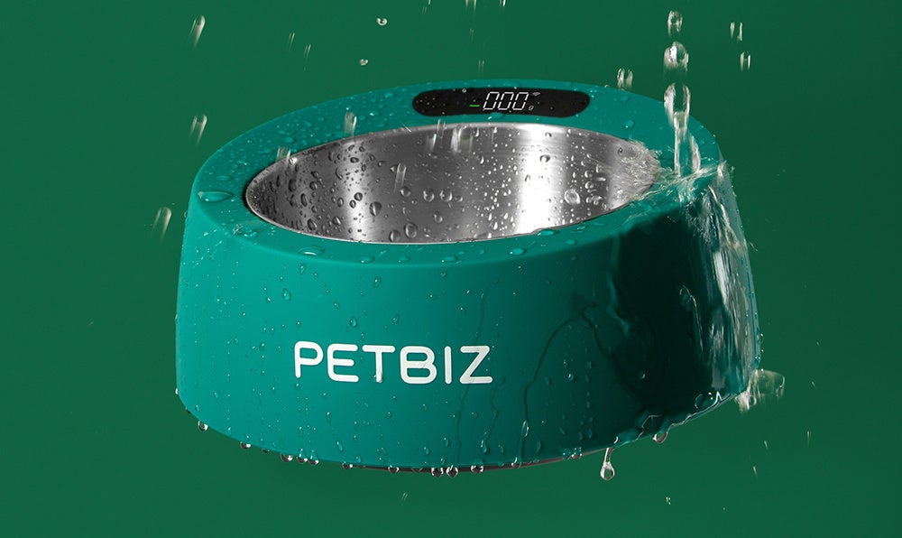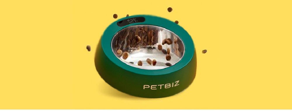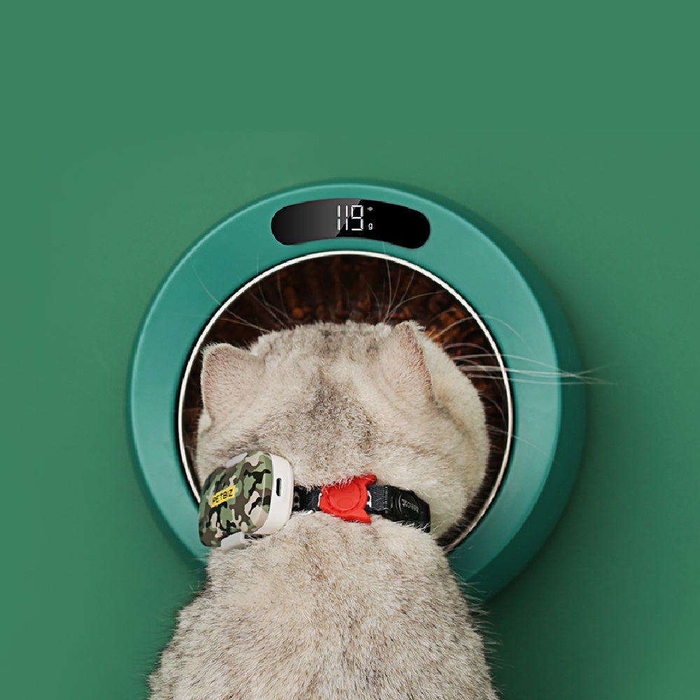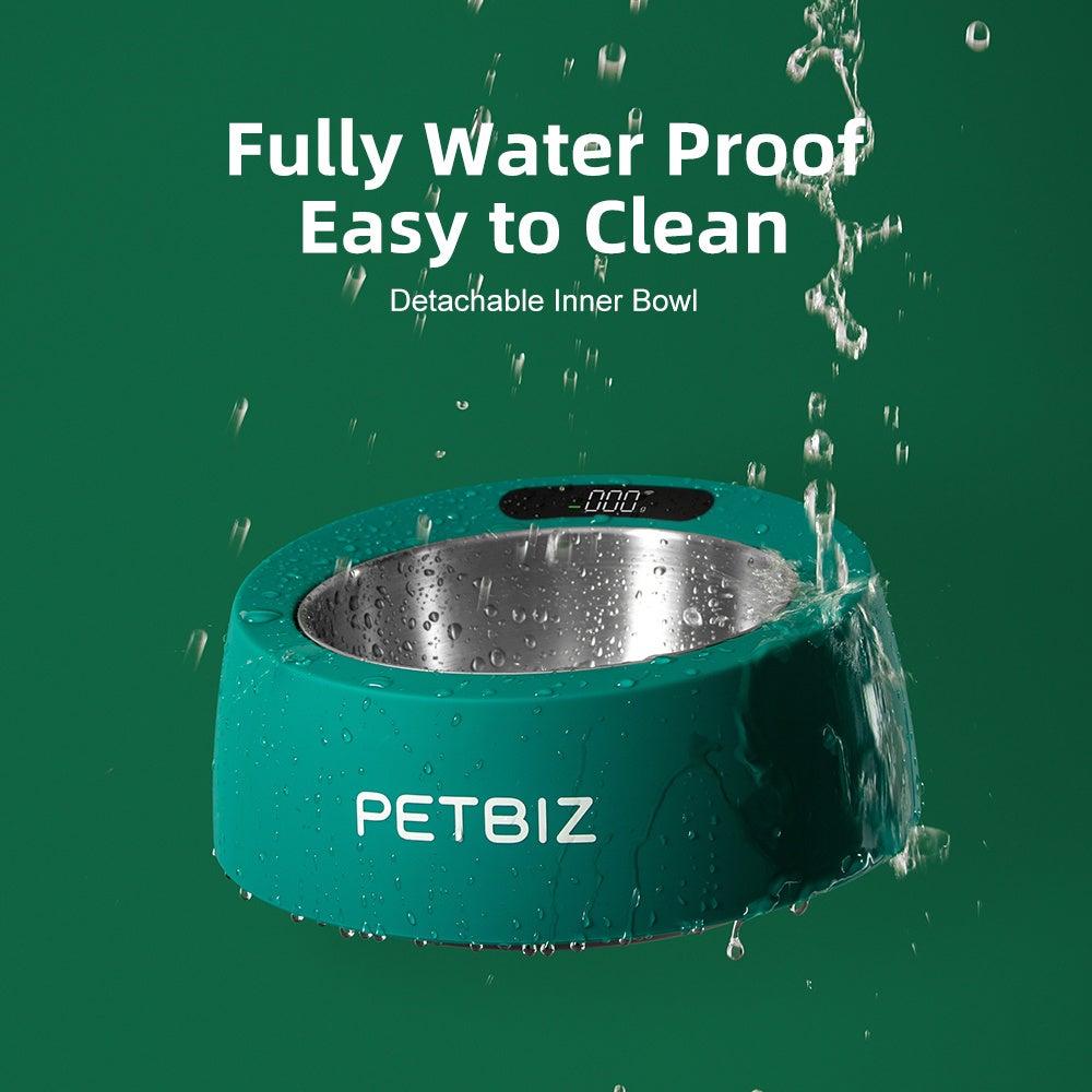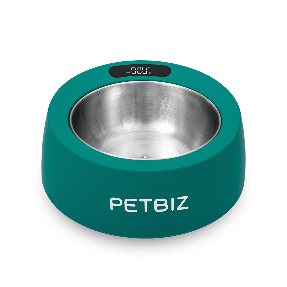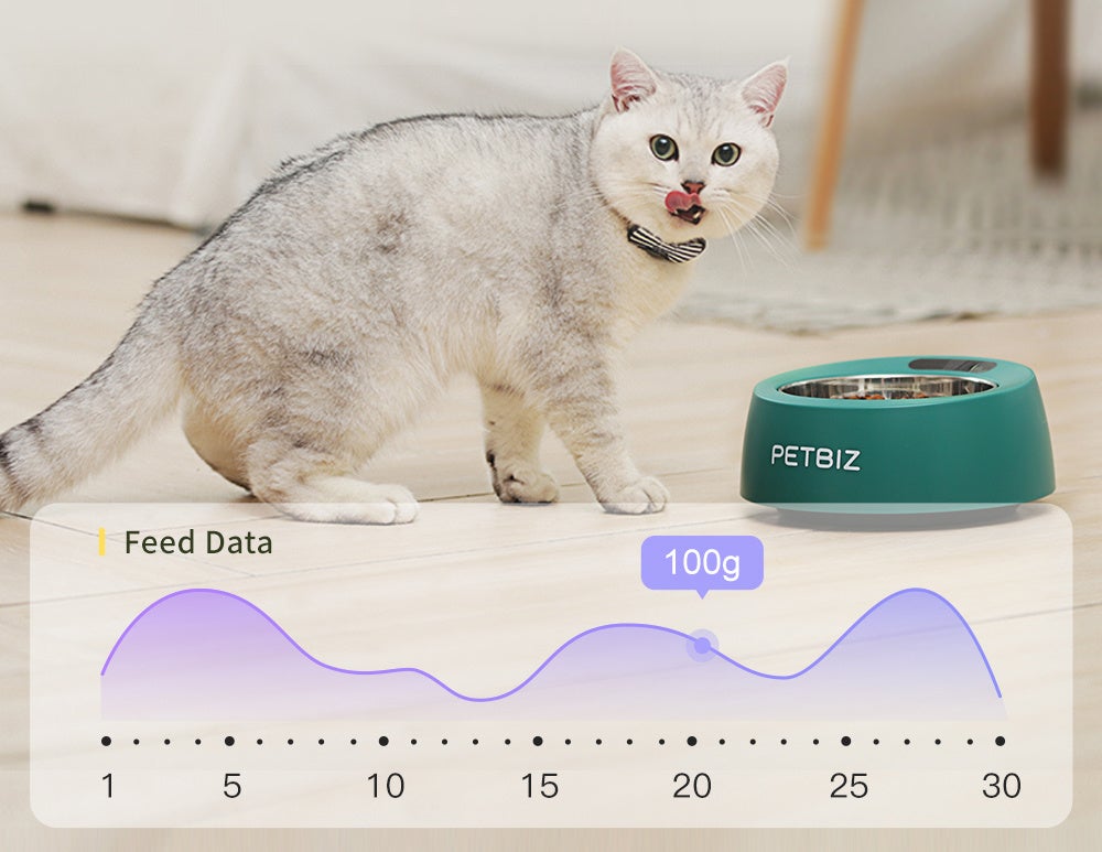 【餌の食べ過ぎを防ぐ/年齢・体重・品種で摂取カロリーの目安を表示/防水IP6&抗菌/iPhone・Android対応/ギフトに】スマートなペット皿です。