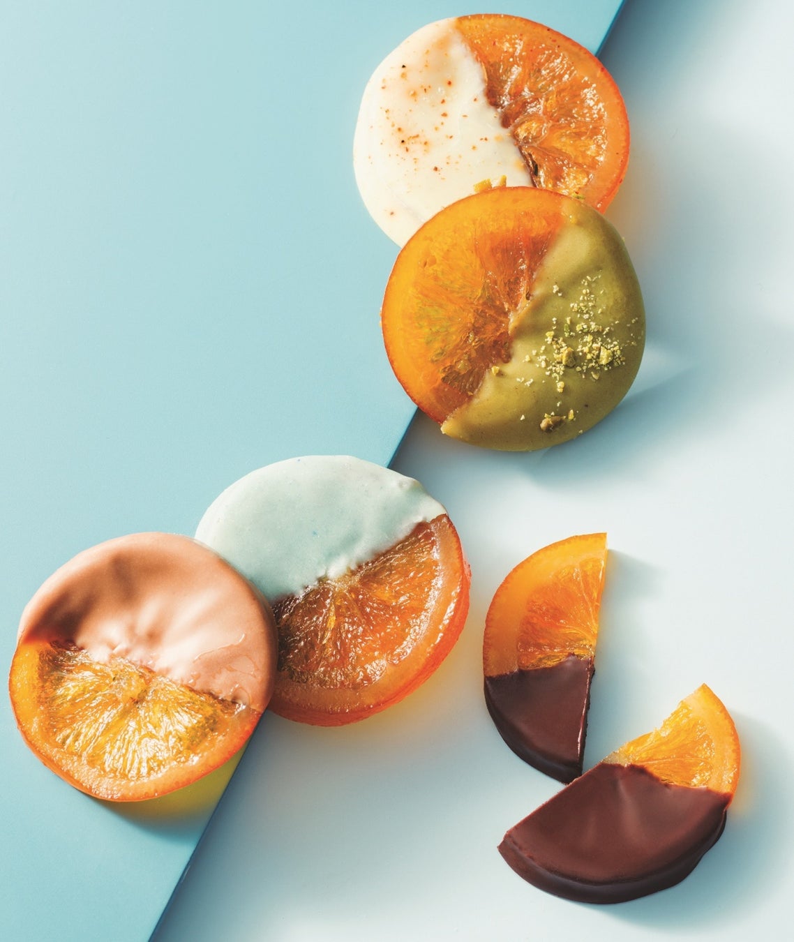 バスク地方の老舗パティスリーから、オレンジの便り。スペイン、バスクの街ビトリアにある、ファミリーで営むパティスリー。選び抜いたイタリア・アグリモンタナのオレンジの風味を活かすために、半分だけチョコレートをかけました。ピスタチオやバスクの塩との調和を楽しんで。