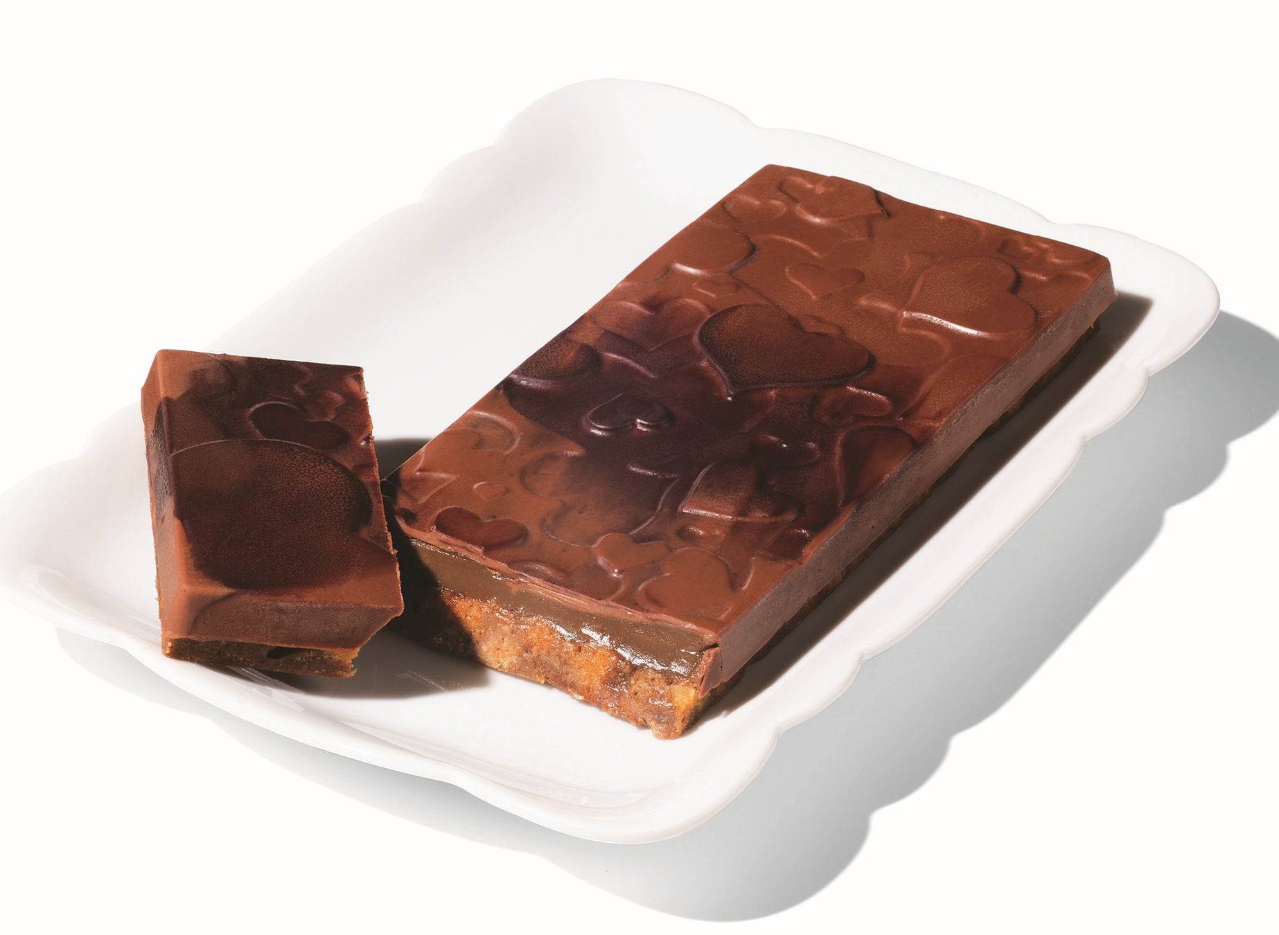 食感も楽しめる2層のミルクティータブレットアノザ®M と、キャラメルのように甘く香るオリジナルブレンド紅茶・オペラのなめらかなミルクティーガナッシュ。シュトロイゼルや紅茶パウダーを混ぜ合わせ、サクサク食感に仕上げたフィヤンティーヌ。 2 層をアノザ ®M でコーティングしてタブレットにしました。表面にちりばめられたハートがキュート。※原材料の一部にチョコレートを使用しております。