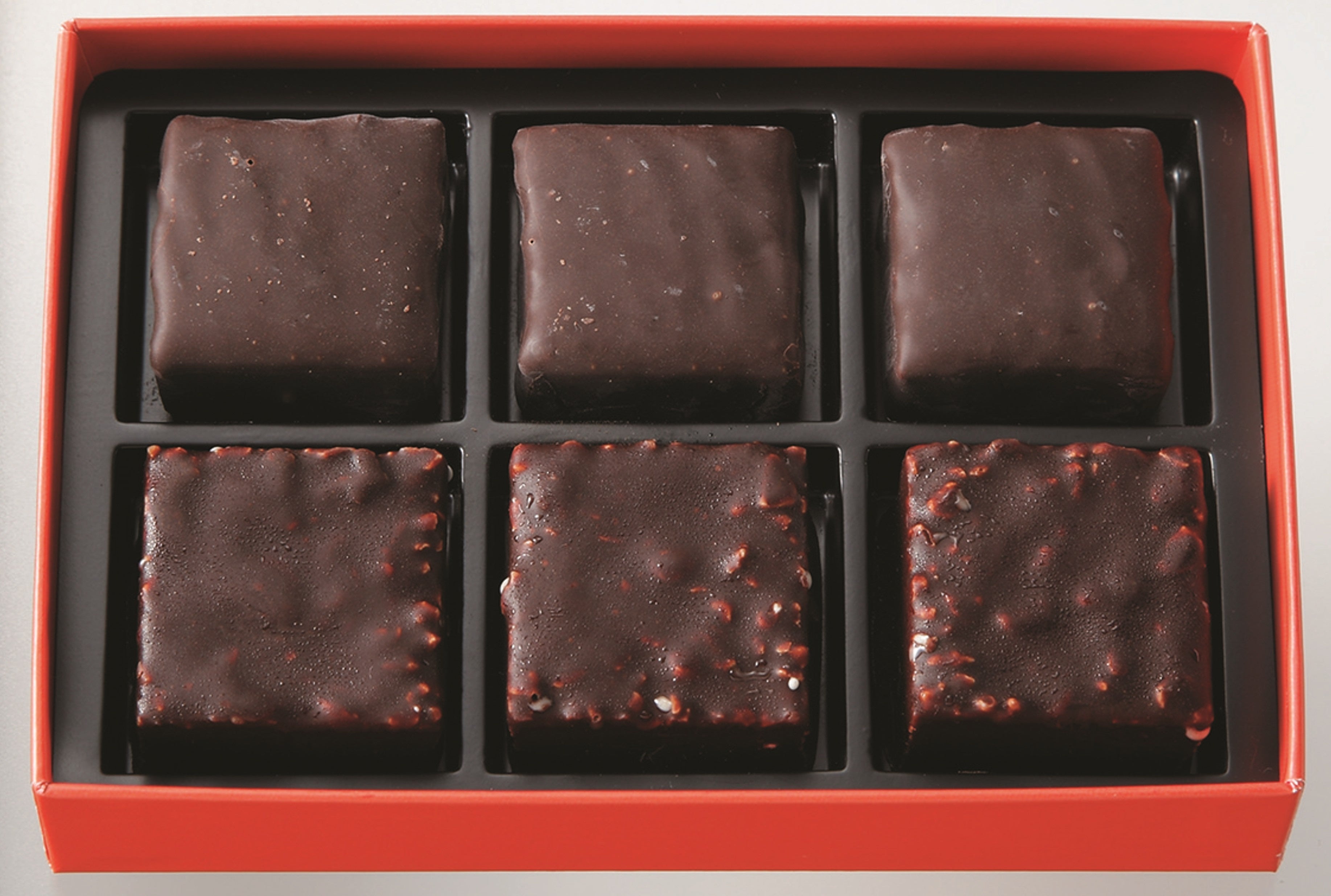 マジパン」やプラリネなど、ジュリアン・グジエン氏の世界観を堪能できるアソート②キャラメリゼしたピエモンテ産ノワゼットのショコラ、ねっとりとしたショコラをまとったアーモンド、オランジェットの多彩な詰め合わせ。