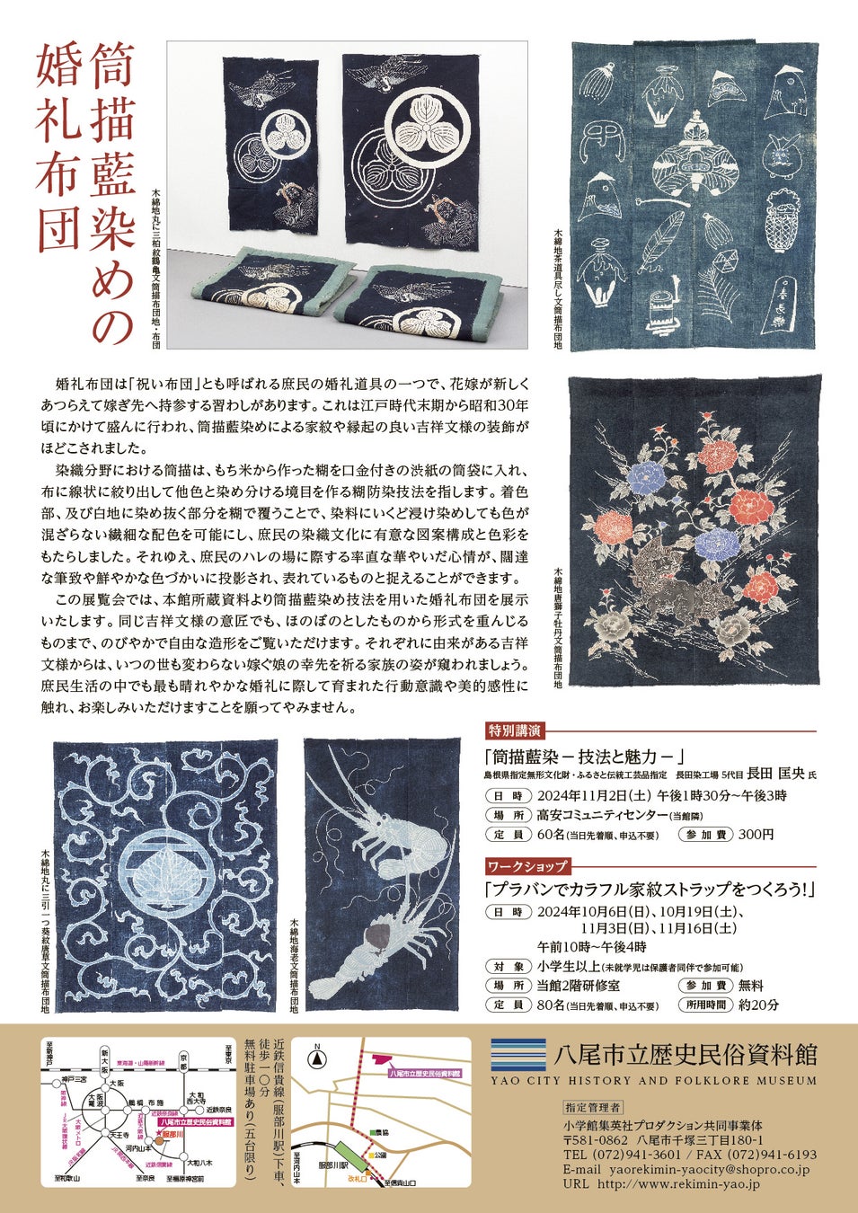 9月28日(土)より特別展「筒描藍染めの婚礼布団」を八尾市立歴史民俗資料館にて開催!