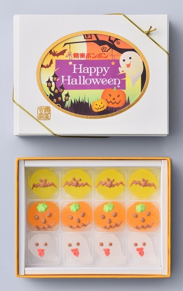 おばけ、かぼちゃ、こうもりをモチーフにした糖蜜ボンボン。