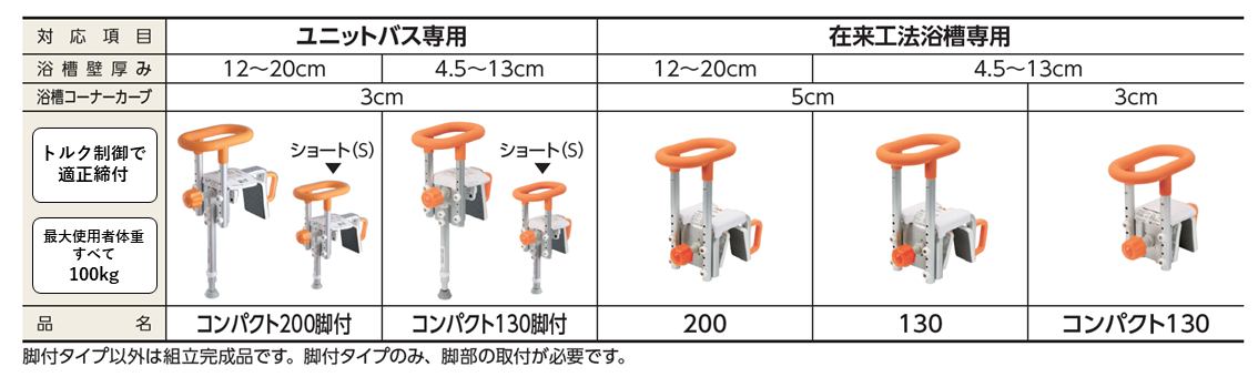幅広い浴槽に対応。浴槽コーナーに寄せて設置できるので、横向きのまたぎ動作が可能です。