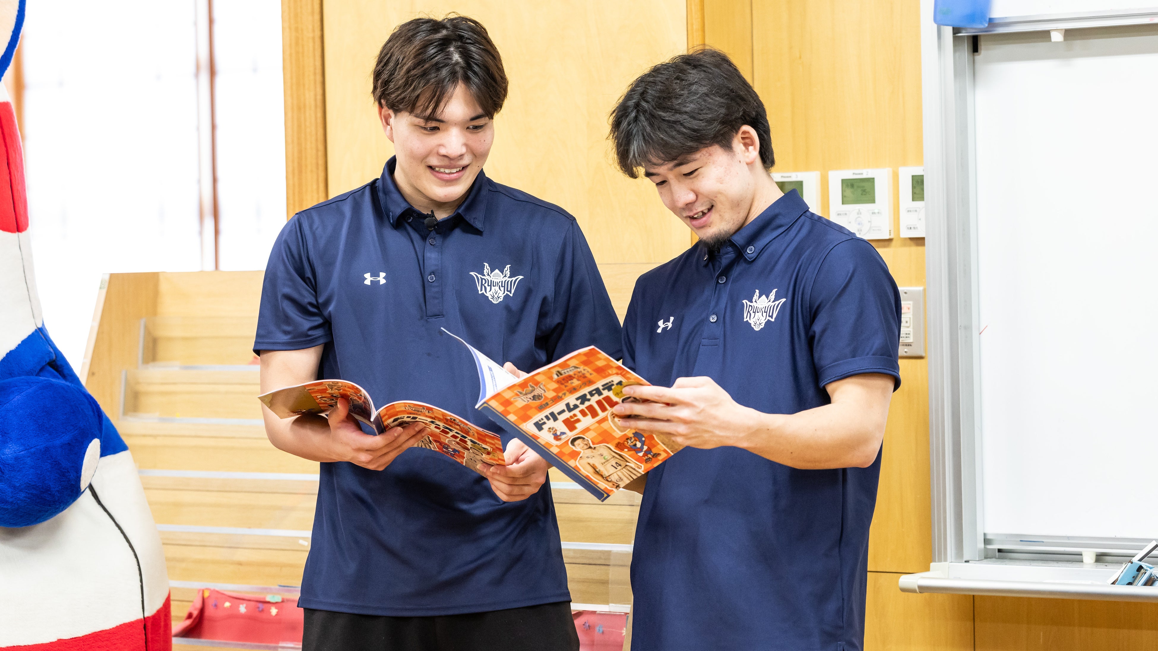 子どもたちの喜んでいる姿が見られて僕自身も幸せでしたし、このような貴重な経験をさせていただき本当に感謝しています。僕が小学生の頃にこうした機会があればとても嬉しかったと思いますし、今は選手として沖縄の子どもたちに少しでも勇気を与えられていると感じられ、夢が叶ったと改めて実感しています。 このドリルには沖縄の文化や歴史も載っているので、楽しみながら、自分たちの住む沖縄がどれほど特別な場所であるかを知ってほしいと思います。
