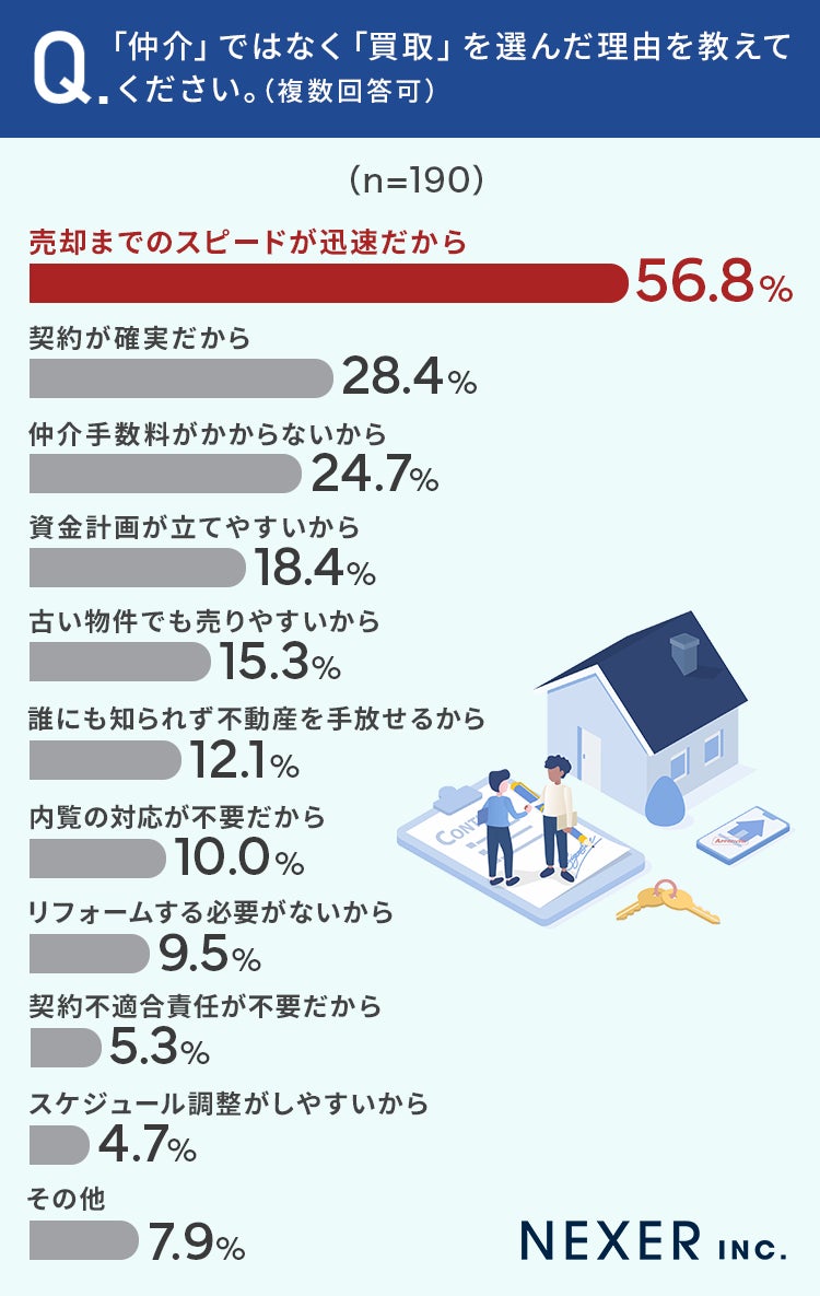 【仲介ではなく買取の理由は?】不動産買取を選んだ理由「売却までのスピードが迅速だから」が56.8%で最多に