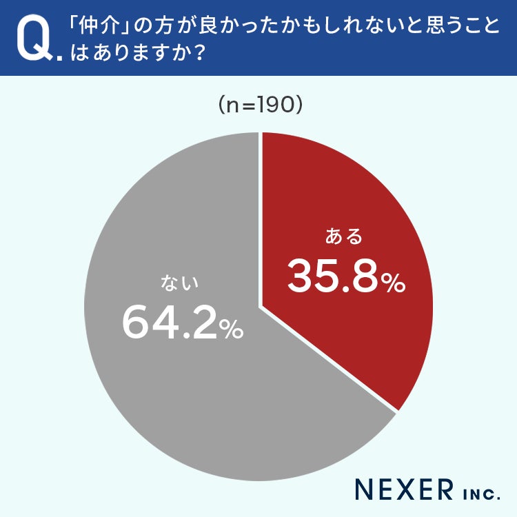 35.8%の方が「仲介」のほうが良かったかもしれないと思うことが「ある」と回答しています。