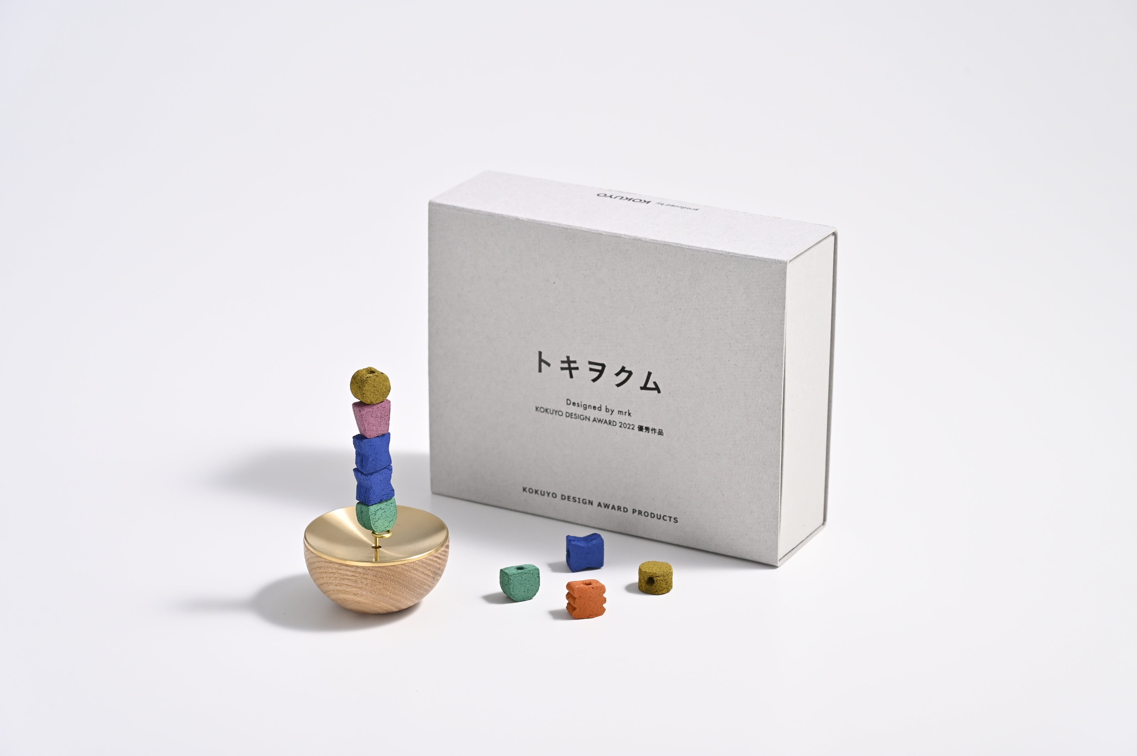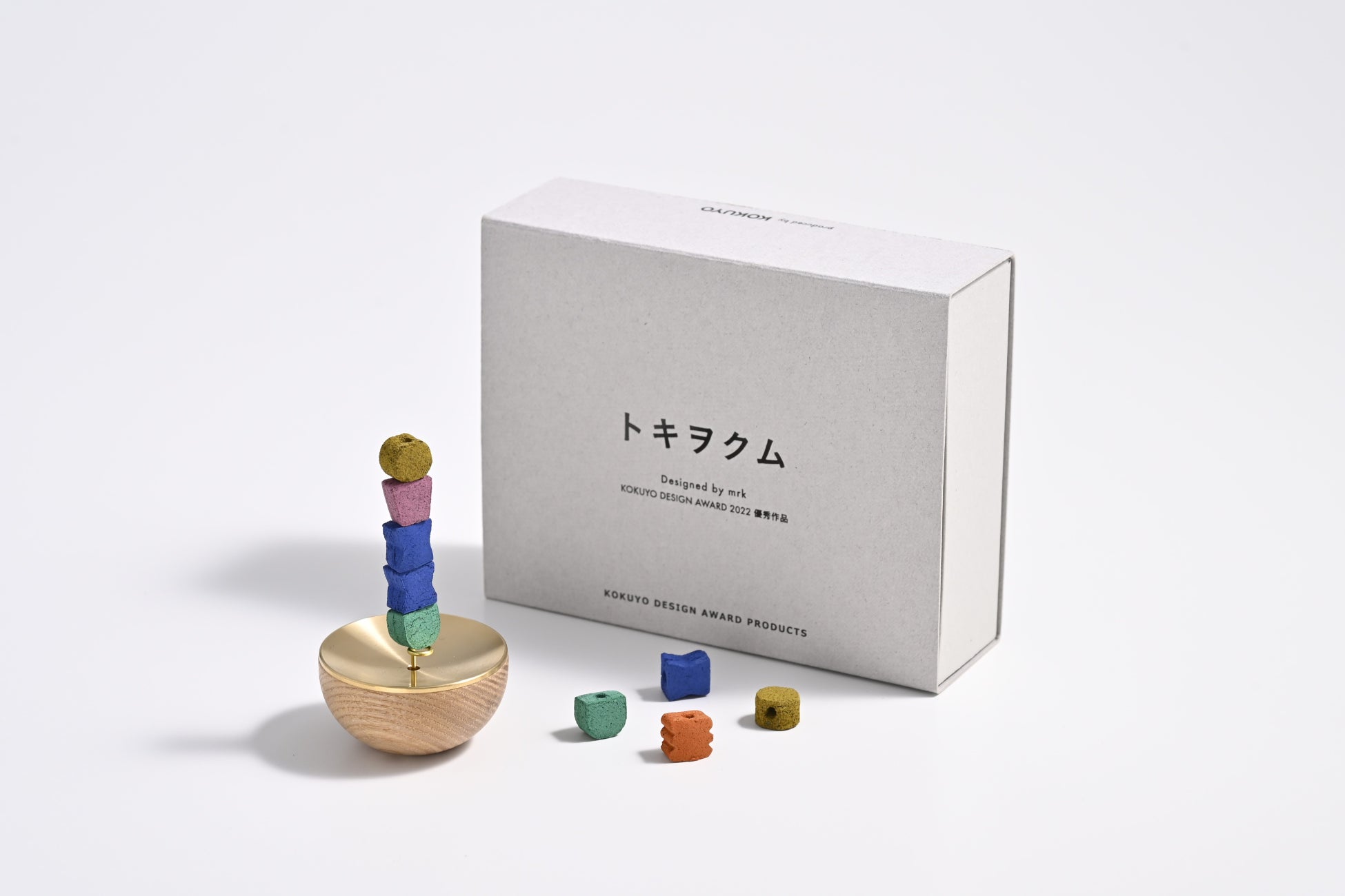 コクヨ株式会社(本社:大阪市/社長:黒田 英邦)は、コクヨデザインアワード2022優秀賞受賞作品「トキヲクム」を株式会社松栄堂(本社:京都市/代表:畑 元章)と共同開発し、4月下旬から50セット限定(※)で発売します。本作は、お香を積み上げて「これから過ごす時間」をデザインする商品です。製品化にあたり、京都伝統の薫香(くんこう)を手掛ける松栄堂が製造し、両社の直営店にて発売します。