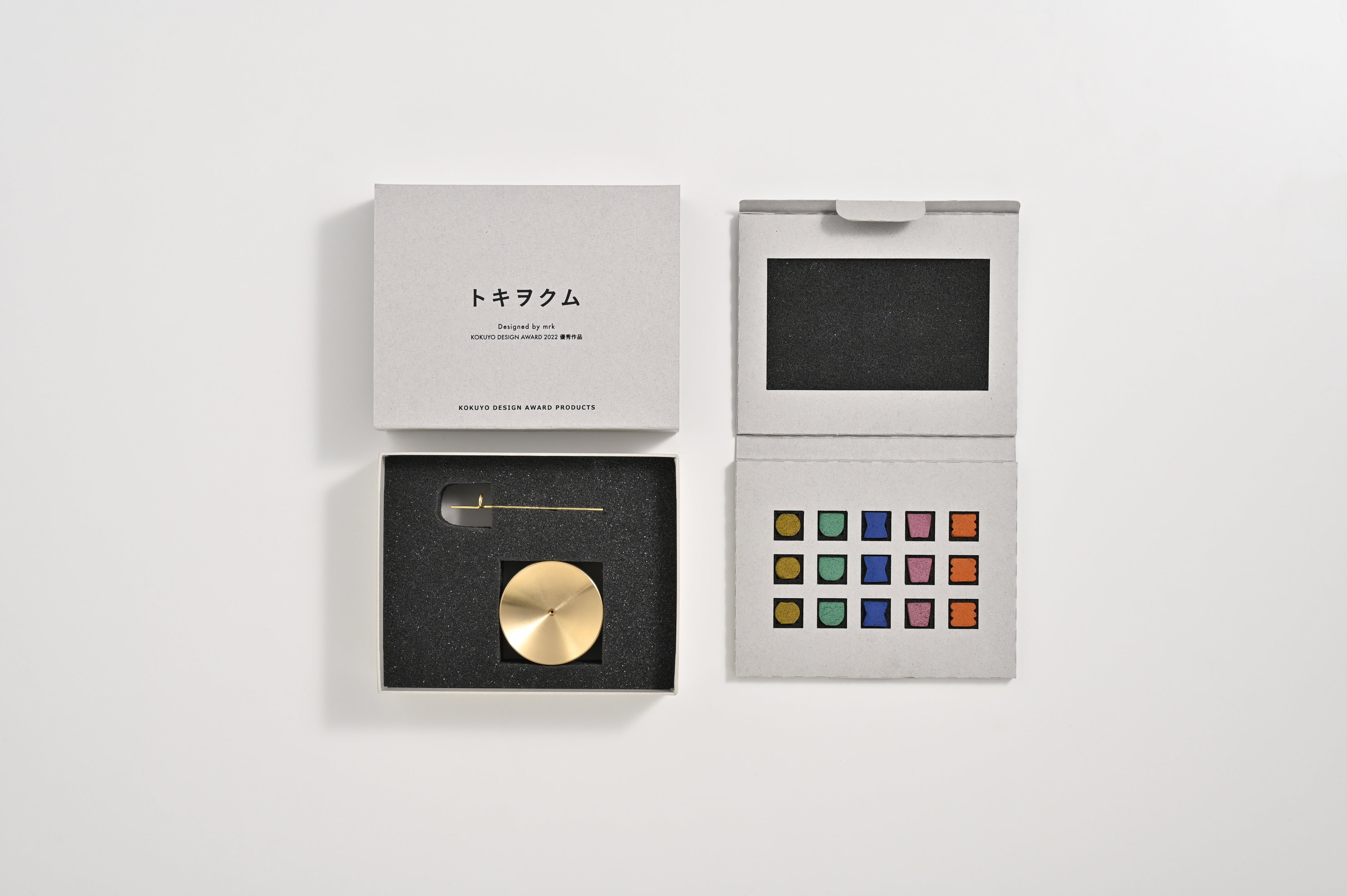 本商品は「コクヨデザインアワード2022」で優秀賞を受賞した、デザイナーユニットmrkの作品を、京都の香老舗・松栄堂の真摯な技術協力によって製品化しました。伝統的なお香を「時間を計る道具」として、現代の暮らしにフィットする形へ昇華させています。自分らしい時間づくりと、新しいひとときをお届けします。