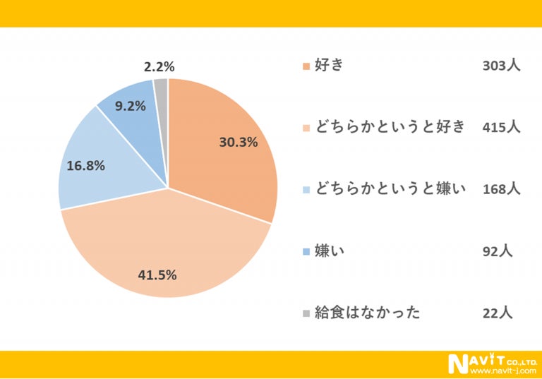 給食が好きだった人は、約7割