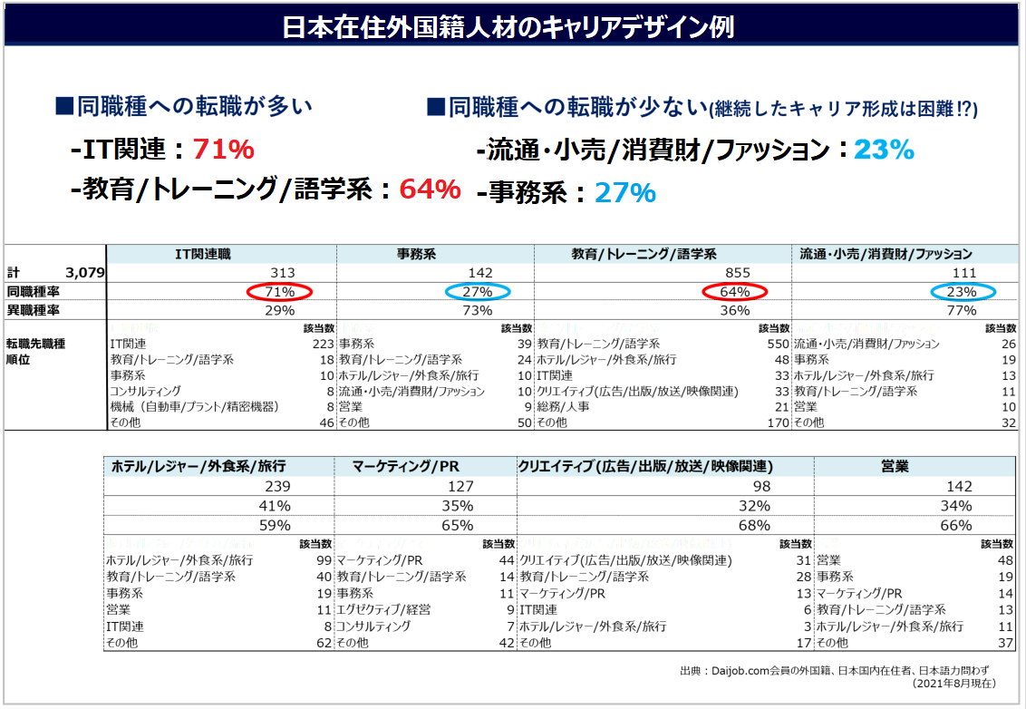 日本で働く外国籍人材のキャリアデザイン、職種によって大差あり~「流通・小売/消費財/ファッション」の人材は70%以上が別の職種へ転職~