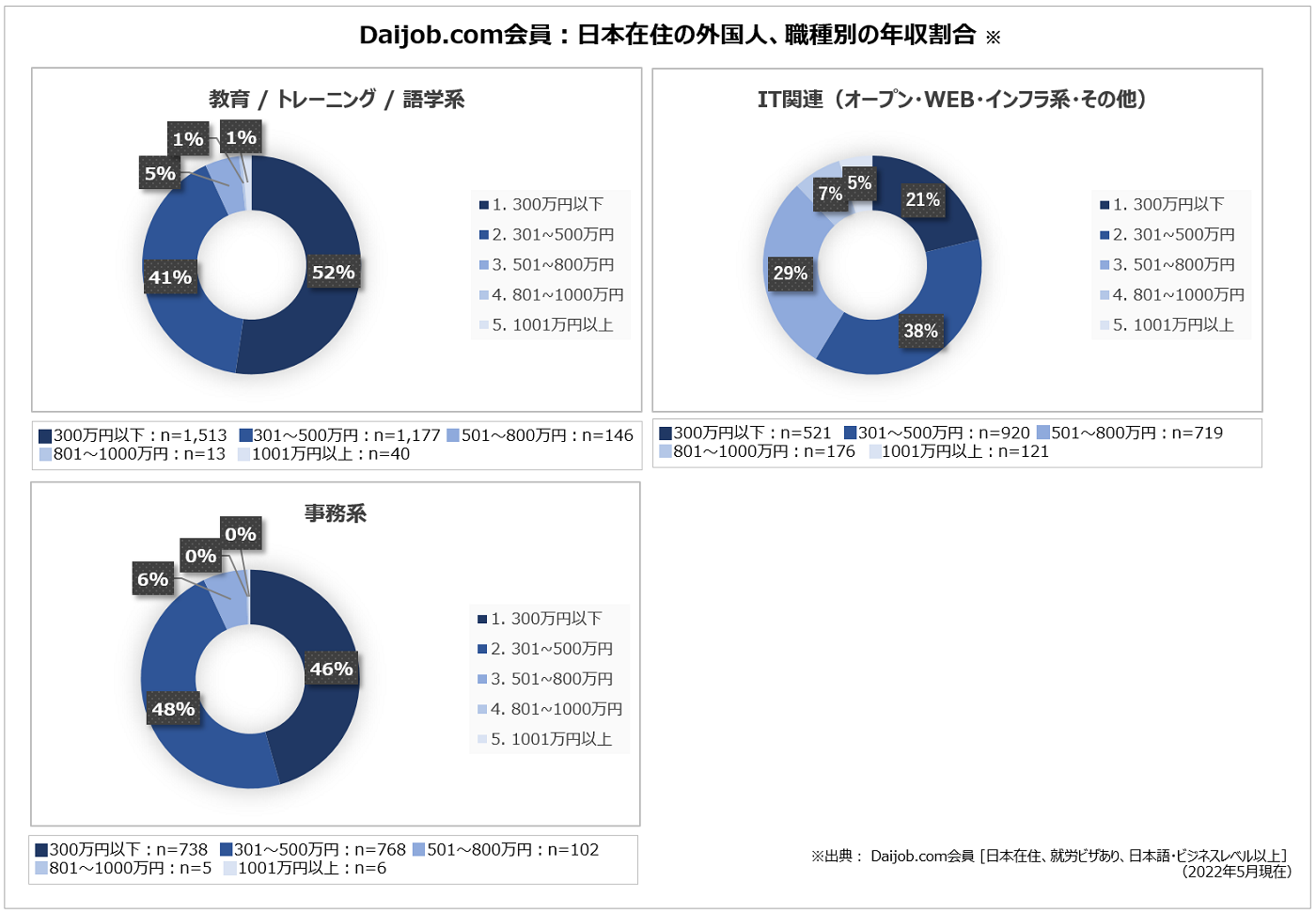 ※3.最終職種別年収:Daijob.comに履歴書を登録した時点で、最後に就業している職種での年収データを利用