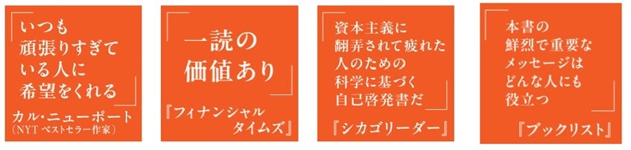 本書を読めば、「怠けること」の罪悪感から解放され、自分自身が価値ある人間であるという感覚をとりもどすことができます。また本書は、あなたにとっての「幸せな人生」とは何かを再考するきっかけになることでしょう。