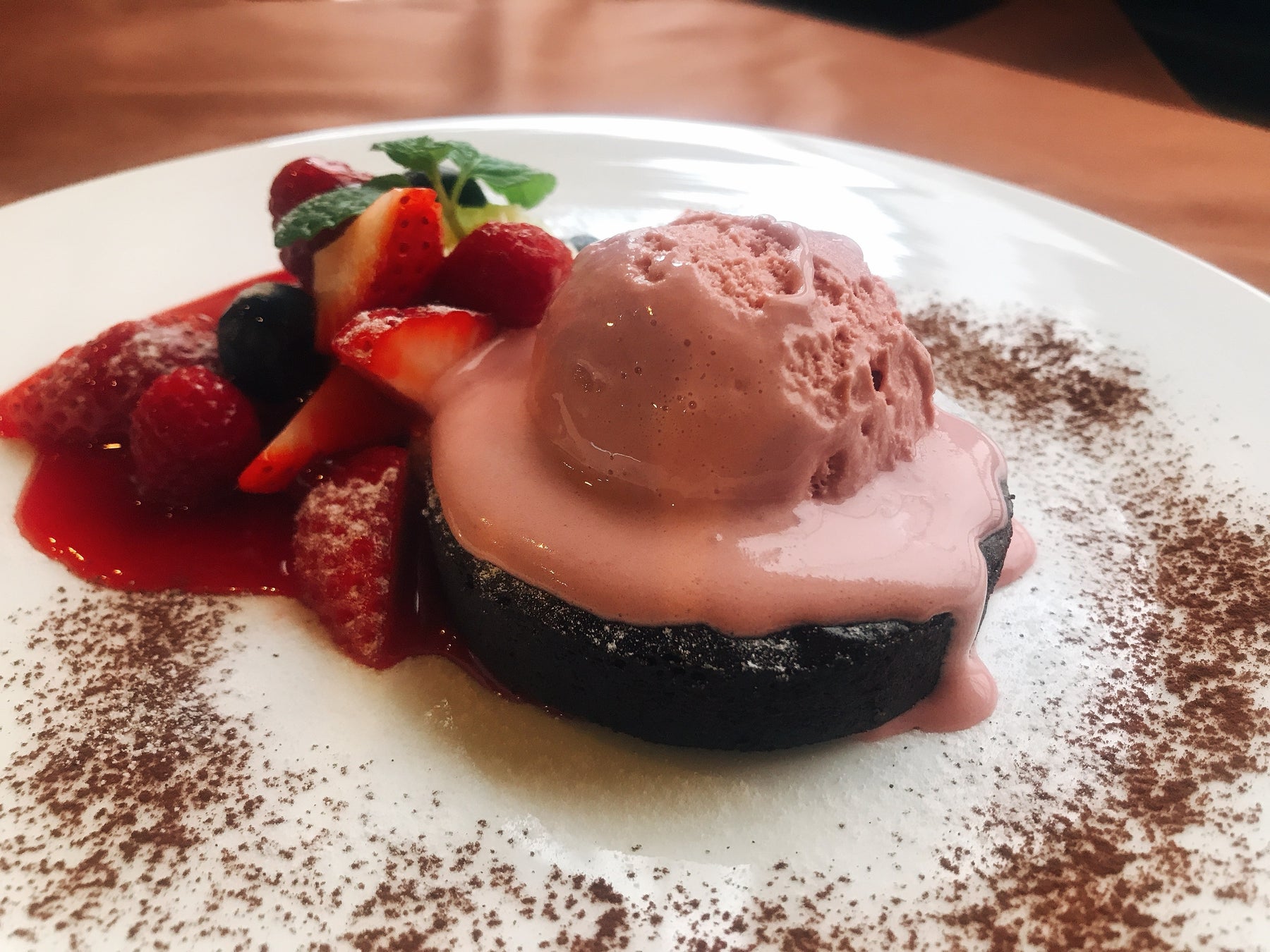 アメリカ生まれの建築家、ウィリアム・メレル・ヴォーリズ氏の作品を写真で愛でながら味わうチョコレート。濃厚なフォンダンショコラに、ベルギー産ルビーチョコレートを使ったアイスをトッピング。相性抜群のベリーもご一緒に。フォンダンショコラ ベリー添え 税込1,500円