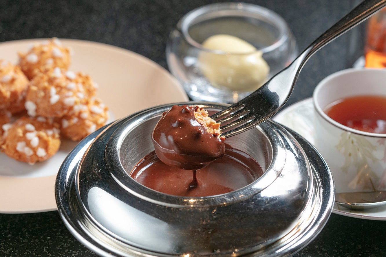 フランス料理の巨匠 アラン・デュカス氏が贈る大丸心斎橋店限定メニュー プロフィットロール ソース・ショコラ グラス・ヴァニーユ 税込1,870円