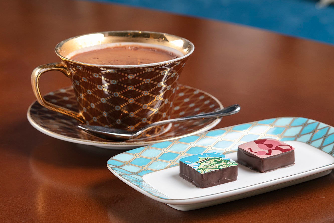 店内に踏み入れるとニューヨーク気分! ニューヨーク本店で絶賛されているホットチョコレートを。 HOT CHOCOLATE 税込1,540円~ ガナッシュ(1粒)税込660円 (2粒)税込1,100円